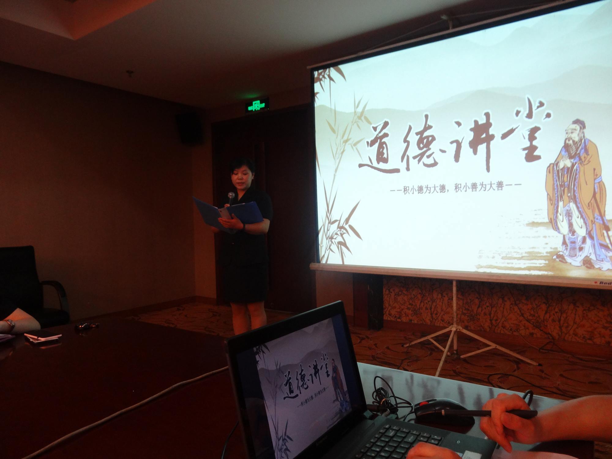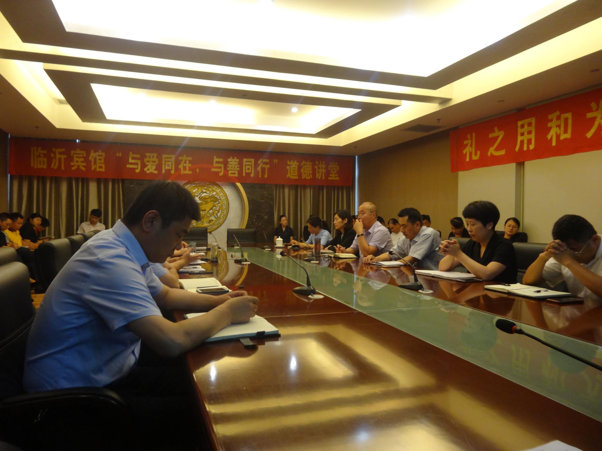 6月22日,臨沂賓館“與愛同在,與善同行”道德講堂在沂蒙路店第三會議室成功舉辦,臨沂賓館全體黨員、入黨積極分子及中層管理人員等50余人參加。 山東是孔孟故里,禮儀之邦,道德傳統(tǒng)源遠(yuǎn)流長,“善”是儒家文化的一個(gè)重要組成部分,臨沂賓館本期道德講堂突出“善良”這一中華民族傳統(tǒng)品德的重要權(quán)重,讓更多的人從自己做起、從身邊的小事做起,踐行善舉,傳播“崇德行善”的正能量。 本期道德講堂分為同唱道德歌曲、學(xué)習(xí)道德模范、誦讀中華經(jīng)典、談感悟發(fā)善心、行崇德禮等五個(gè)環(huán)節(jié)。本期學(xué)習(xí)的道德模范是2017年度感動(dòng)中國十大人物之一黃大年,其愛崗敬業(yè)、至誠報(bào)國的高尚品質(zhì)讓在場的人感動(dòng)。然后,由臨沂賓館三名員工講述了發(fā)生在我們身邊的凡人善舉,其中沂蒙路店孫曉穎講述的是《身邊的好人——曹玉軍》,大學(xué)酒店肖瑤講述的是《愛心再接力,溫情暖人心》,開發(fā)區(qū)店孟靈芝講述的是《讓我們再學(xué)張記磊》,從身邊小事中折射出的善良光輝給予了在場的每一個(gè)人極大的感染。誦讀中華經(jīng)典環(huán)節(jié),選取《論語》中的名句“禮之用和為貴,德不孤必有鄰”,讓大家共同感受到了儒家文化中對于道德的篤信推崇。唱過道德歌、看過道德視頻、聽過道德故事、誦讀了中華經(jīng)典,大家感悟良多并進(jìn)行了分享,也收獲了一份小禮品。最后,在行崇德禮之后,本期道德講堂圓滿結(jié)束。 本期道德講堂的成功舉辦,在弘揚(yáng)中華民族傳統(tǒng)文化中的“善”文化的同時(shí),讓每一位參與其中的人在潛移默化中感受到道德的力量,并以發(fā)生在我們身邊的好人好事為典型,呼吁更多的人參與到“發(fā)善心,行善舉”的行動(dòng)中,傳遞社會正能量,為我市創(chuàng)建全國文明城市營造濃厚氛圍。(臨沂賓館 王本強(qiáng))