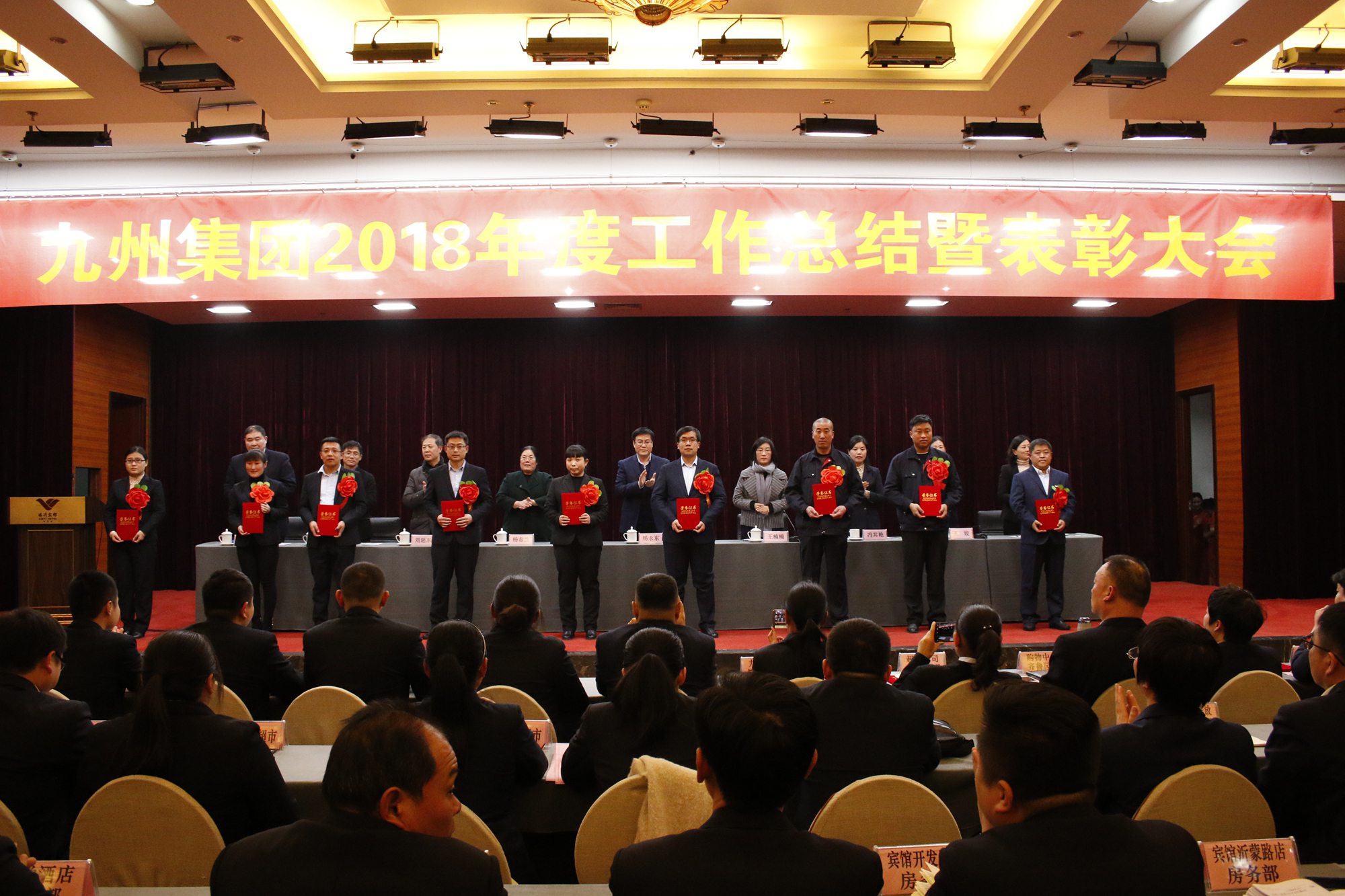 2月25日,九州集團(tuán)2018年度工作總結(jié)暨表彰大會(huì)在臨沂賓館隆重召開(kāi)。大會(huì)總結(jié)成績(jī),表彰先進(jìn),安排部署新年度工作任務(wù)。集團(tuán)領(lǐng)導(dǎo),各經(jīng)營(yíng)單位班子成員、部門(mén)負(fù)責(zé)人,先進(jìn)集體和優(yōu)秀個(gè)人代表400余人參加大會(huì)。董事長(zhǎng)兼總經(jīng)理?xiàng)钣罇|在會(huì)上作集團(tuán)工作報(bào)告、黨委副書(shū)記王姣宣讀表彰決定。會(huì)議由黨委書(shū)記王楠楠主持。 會(huì)上,集團(tuán)對(duì)超市公司購(gòu)物中心河?xùn)|店、超市公司購(gòu)物中心齊魯園店、超市公司小食品采購(gòu)部、九州大廈楊莊店超市、九州家電海爾采購(gòu)部等5個(gè)“突出貢獻(xiàn)獎(jiǎng)”獲獎(jiǎng)部位,九州大廈長(zhǎng)安店和超市公司九州冷庫(kù)兩個(gè)“效益提升獎(jiǎng)”獲獎(jiǎng)部位,42個(gè)“先進(jìn)集體”獲獎(jiǎng)部位,35名“優(yōu)秀管理人員”,23名“崗位標(biāo)兵”,16名“銷(xiāo)售之星”和309名“優(yōu)秀員工”進(jìn)行了通報(bào)表彰。這次受表彰的先進(jìn)集體和優(yōu)秀個(gè)人,一年來(lái)緊緊圍繞企業(yè)中心工作,勇于擔(dān)當(dāng),拼搏進(jìn)取,為企業(yè)三個(gè)文明建設(shè)做出了積極貢獻(xiàn)。集團(tuán)要求全體員工以受表彰的先進(jìn)為榜樣,立足本職,積極進(jìn)取,努力提高業(yè)務(wù)技能水平和綜合素質(zhì),為企業(yè)加快發(fā)展做貢獻(xiàn)。 會(huì)上,超市公司購(gòu)物中心河?xùn)|店店長(zhǎng)鄭麗、九州家電海爾采購(gòu)部經(jīng)理羅超分別代表“突出貢獻(xiàn)獎(jiǎng)”獲獎(jiǎng)部位發(fā)言;九州大廈楊莊店超市經(jīng)理王洛芝代表“先進(jìn)集體”獲獎(jiǎng)部位發(fā)言;超市公司購(gòu)物中心齊魯園店店長(zhǎng)李國(guó)、臨沂賓館開(kāi)發(fā)區(qū)店廚房部廚師長(zhǎng)孫運(yùn)富、汽貿(mào)公司哈弗通泰4S店銷(xiāo)售顧問(wèn)王云靜分別作為“優(yōu)秀管理人員”“崗位標(biāo)兵” 和“銷(xiāo)售之星”代表發(fā)言。 最后,董事長(zhǎng)兼總經(jīng)理?xiàng)钣罇|作集團(tuán)年度工作報(bào)告。工作報(bào)告從“圍繞市場(chǎng)抓經(jīng)營(yíng),推動(dòng)企業(yè)穩(wěn)健發(fā)展;圍繞經(jīng)營(yíng)抓管理,向管理要效益;圍繞中心工作,加強(qiáng)精神文明建設(shè),構(gòu)建和諧企業(yè)”等三個(gè)方面對(duì)集團(tuán)一年的工作進(jìn)行了總結(jié)回顧。同時(shí),工作報(bào)告客觀指出了企業(yè)存在的問(wèn)題和不足。集團(tuán)要求各經(jīng)營(yíng)單位和集團(tuán)行政處室,針對(duì)存在的問(wèn)題和不足,在新年度的工作中深入分析原因,吸取經(jīng)驗(yàn)教訓(xùn),及時(shí)改進(jìn)提升。對(duì)于2019年的工作,報(bào)告指出要圍繞提升企業(yè)經(jīng)濟(jì)效益這一中心工作,創(chuàng)新經(jīng)營(yíng)思路,擴(kuò)大市場(chǎng)份額,提高管理水平,提升綜合競(jìng)爭(zhēng)力。 新的一年,新的征程,新的希望。集團(tuán)要求全體員工在公司董事會(huì)和黨委的堅(jiān)強(qiáng)領(lǐng)導(dǎo)下,堅(jiān)定信心,團(tuán)結(jié)一致,以更加飽滿的熱情,更加務(wù)實(shí)的作風(fēng),更加昂揚(yáng)的斗志,為圓滿完成新年度的各項(xiàng)目標(biāo)任務(wù)而努力奮斗! (集團(tuán)辦公室)