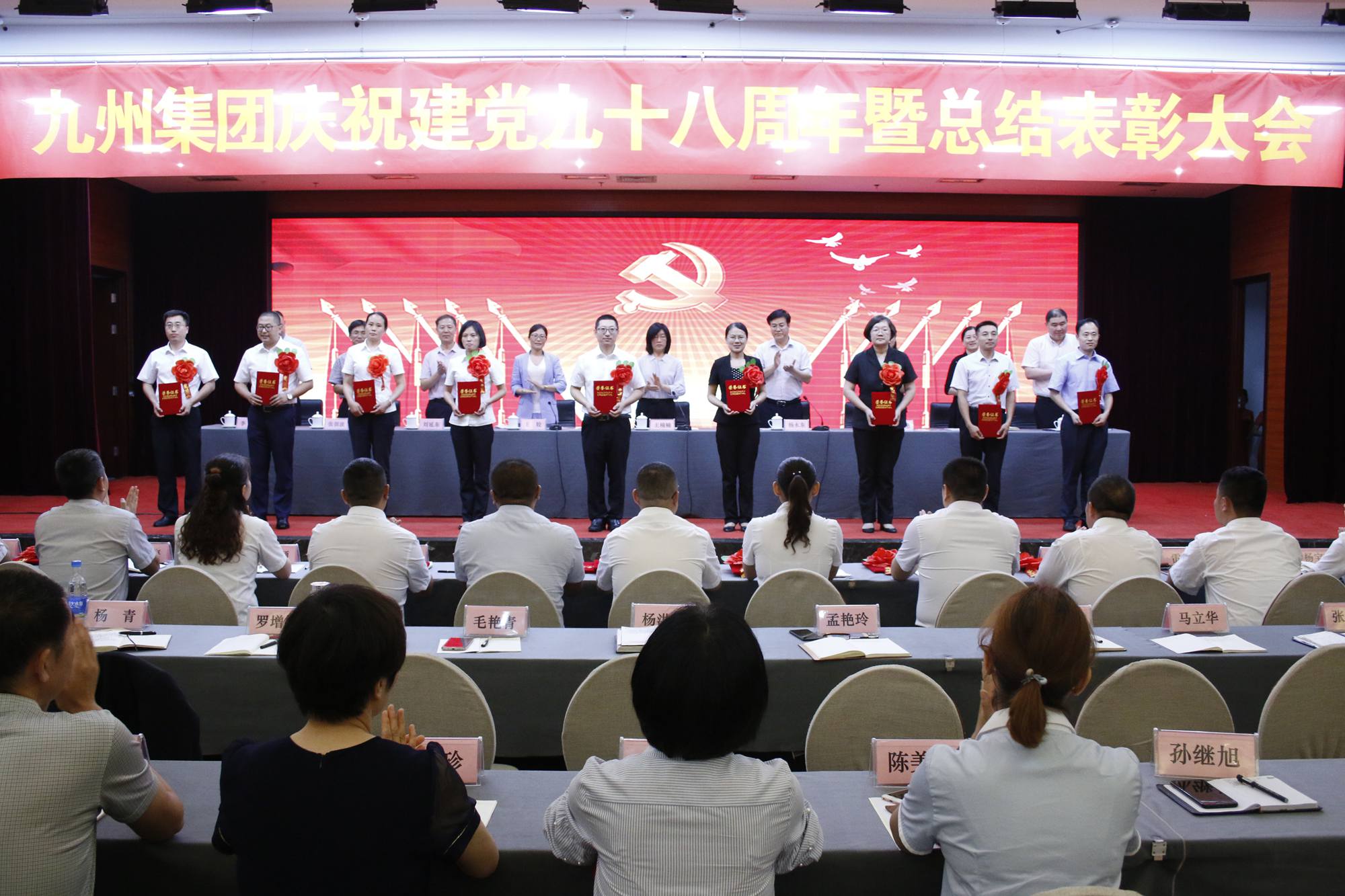 6月28日下午,九州集團慶祝中國共產(chǎn)黨建黨九十八周年暨總結(jié)表彰大會在臨沂賓館召開。會上,集團黨委組織新發(fā)展的黨員進行了入黨宣誓,表彰了2018年度涌現(xiàn)出的優(yōu)秀共產(chǎn)黨員,對2018年度黨建工作開展情況進行了總結(jié)回顧,安排部署了新年度工作任務。集團全體在職黨員、預備黨員260余人參加大會。會議由集團董事長楊永東主持。 大會在國歌聲中開始。集團黨委書記王楠楠代表集團黨委作《集團黨委2018年度工作總結(jié)及2019年度工作計劃安排》報告。報告從加強黨的建設,為企業(yè)發(fā)展提供政治保障;做好日常管理工作,夯實黨建基礎;以黨建促發(fā)展,努力提升經(jīng)濟效益;重視精神文明建設,努力構(gòu)建和諧企業(yè)等四方面對過去一年的工作進行了總結(jié)。全面梳理了一年來黨建工作開展情況,肯定了各支部在黨建工作中取得的成績和好的經(jīng)驗做法,同時也指出了工作中還存在的問題與不足,并結(jié)合企業(yè)經(jīng)營管理的實際情況對新年度黨建工作進行了安排部署。新年度集團黨委將按照“圍繞經(jīng)營抓黨建、抓好黨建促發(fā)展”這一總體工作思路,加強黨的建設,充分發(fā)揮廣大黨員干部的模范帶頭作用,不斷增強企業(yè)發(fā)展凝聚力和向心力。 會上,集團黨委對41名優(yōu)秀共產(chǎn)黨員進行了表彰。這次受表彰的優(yōu)秀共產(chǎn)黨員,是集團廣大黨員隊伍中的優(yōu)秀代表。他們在不同工作崗位上較好地發(fā)揮了模范帶頭作用,展現(xiàn)了良好的精神風貌。集團黨委要求全體黨員要真學習他們的先進思想、先進經(jīng)驗,立足本職、勇于進取,積極發(fā)揮先鋒模范作用,為企業(yè)的發(fā)展做貢獻。 會上,集團黨委還舉行了新發(fā)展黨員入黨宣誓儀式。面對鮮紅的黨旗,集團黨委副書記王姣帶領16名新發(fā)展的黨員進行了莊嚴宣誓:我志愿加入中國共產(chǎn)黨,擁護黨的綱領,遵守黨的章程,履行黨員義務,執(zhí)行黨的決定,嚴守黨的紀律,保守黨的秘密,對黨忠誠,積極工作,為共產(chǎn)主義奮斗終身,隨時準備為黨和人民犧牲一切,永不叛黨。 新的年度,集團黨委要求廣大黨員干部要圍繞提升企業(yè)經(jīng)濟效益這一中心工作,積極發(fā)揮模范帶頭作用,凝心聚力,銳意進取,為加快企業(yè)發(fā)展貢獻力量。 大會在國際歌中結(jié)束。