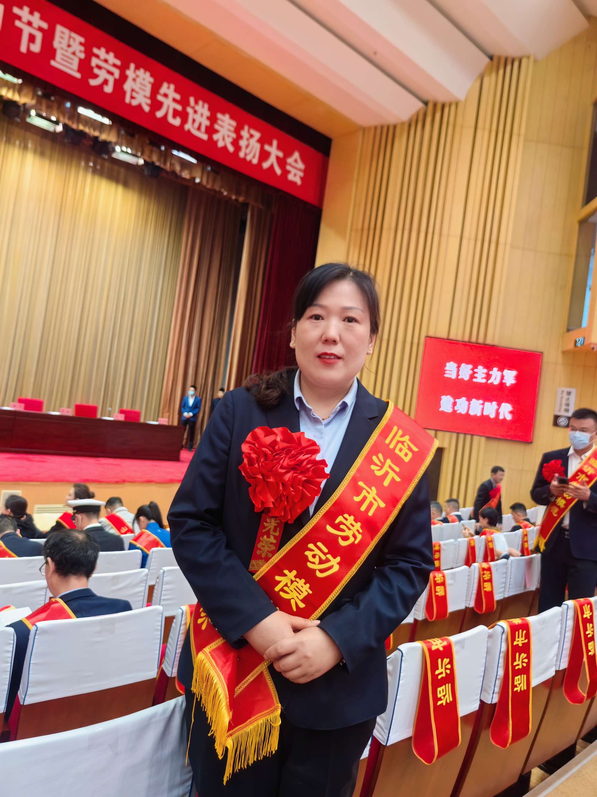 4月28日上午,臨沂市慶!拔逡弧眹(guó)際勞動(dòng)節(jié)暨先進(jìn)集體、先進(jìn)個(gè)人通報(bào)表?yè)P(yáng)大會(huì)在臨沂市市政中心召開(kāi)。超市公司副總經(jīng)理兼購(gòu)物中心河?xùn)|店店長(zhǎng)趙艷慧榮獲“臨沂市勞動(dòng)模范”榮譽(yù)稱號(hào)。