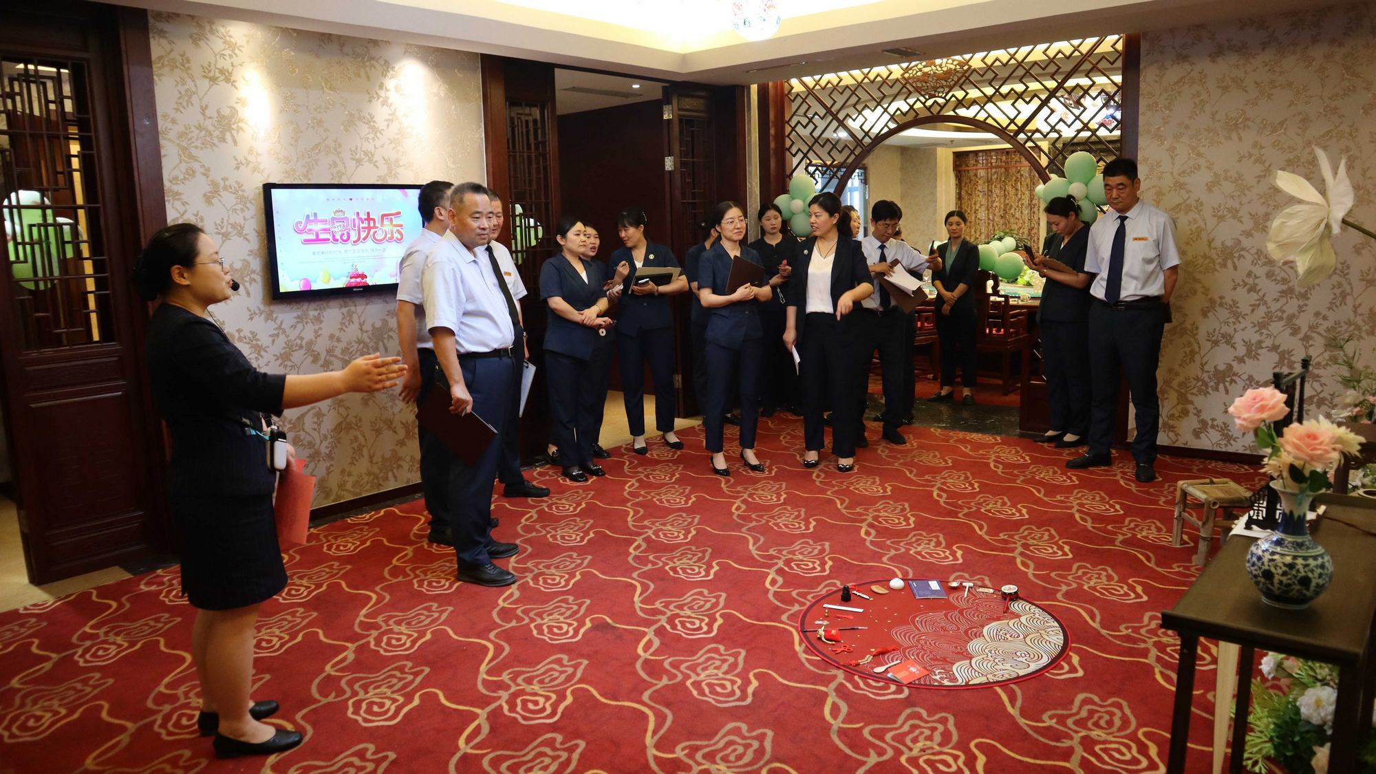 為更好地為顧客提供沉浸式、場(chǎng)景化的服務(wù)體驗(yàn),6月25日至26日,臨沂賓館舉行了場(chǎng)景布置比賽。各店餐廳部、房務(wù)部分別對(duì)餐廳包間、餐廳小型宴會(huì)廳或會(huì)議室、客房房間進(jìn)行主題設(shè)計(jì)、講解。