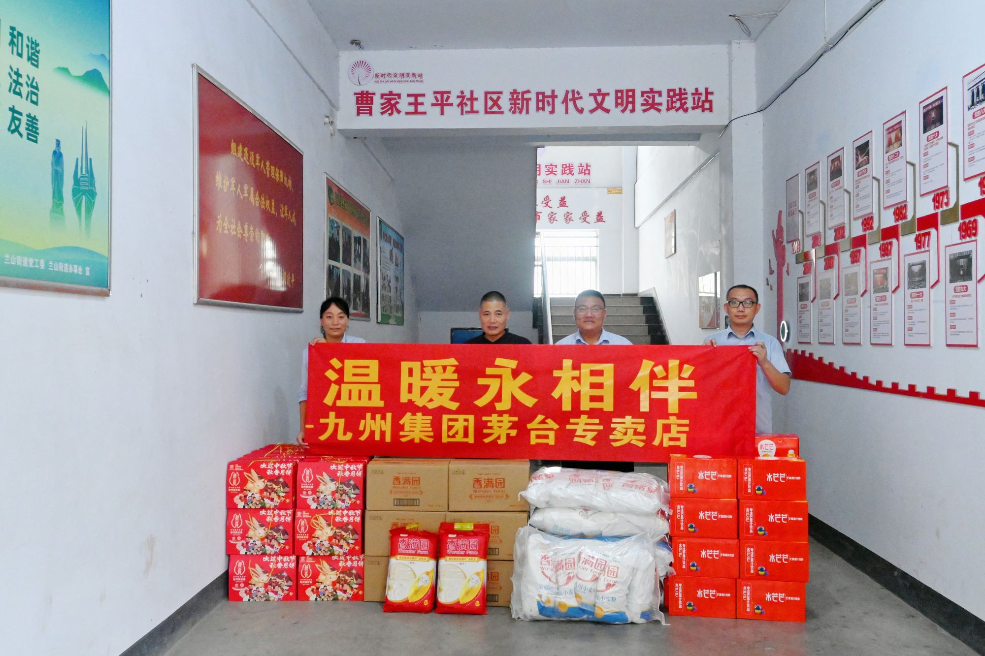 9月12日-13日,超市公司茅臺專賣店志愿者們分別來到曹家王平社區(qū)和九曲街道趙家莊村社區(qū),為社區(qū)居民送去中秋節(jié)慰問品,祝愿社區(qū)居民度過一個溫暖舒心的中秋佳節(jié)。