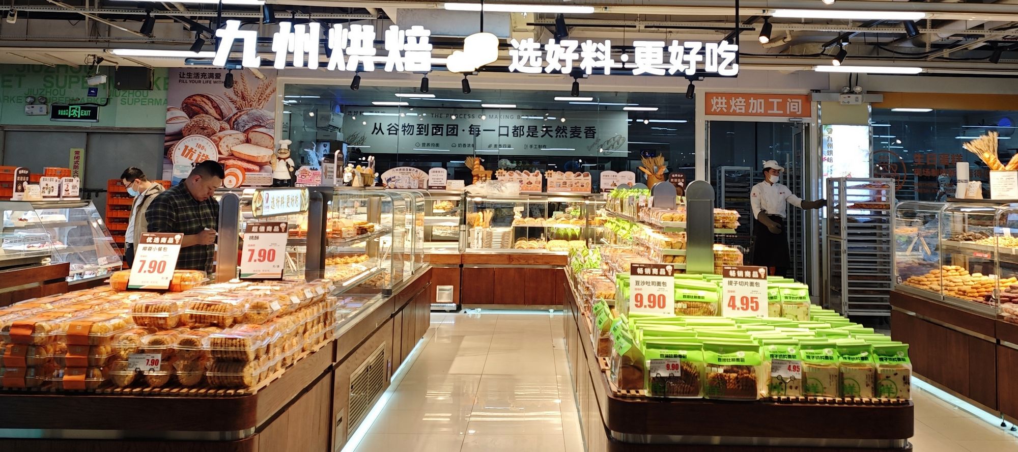 為讓更多的顧客享受到九州烘焙系列產(chǎn)品,感受美好“食”光,超市公司決定開設(shè)自營(yíng)烘焙面包店。九州烘焙東華花園店位于臨沂市沂河新區(qū)香港路與沂河路交匯九州超市內(nèi),經(jīng)營(yíng)面積70余平方米。開業(yè)當(dāng)天,店內(nèi)各式面包糕點(diǎn)種類豐富,現(xiàn)場(chǎng)加工類產(chǎn)品60余種,包括裱花生日蛋糕在內(nèi)的糕點(diǎn)類產(chǎn)品40余種,從現(xiàn)烤類肉松卷、豬扒包、奧利奧可可、芝士肉松包、核桃馬里奧到吐司類雜糧吐司、紅豆吐司再到披薩類、三明治類,商品豐富多樣,能有效滿足家庭早餐、下午茶、兒童零食等多場(chǎng)景需求。店內(nèi)所有產(chǎn)品使用優(yōu)質(zhì)原材料,堅(jiān)持天然無(wú)添加;現(xiàn)烤熱賣產(chǎn)品當(dāng)天現(xiàn)烤現(xiàn)賣,當(dāng)日出清,確保新鮮健康。
