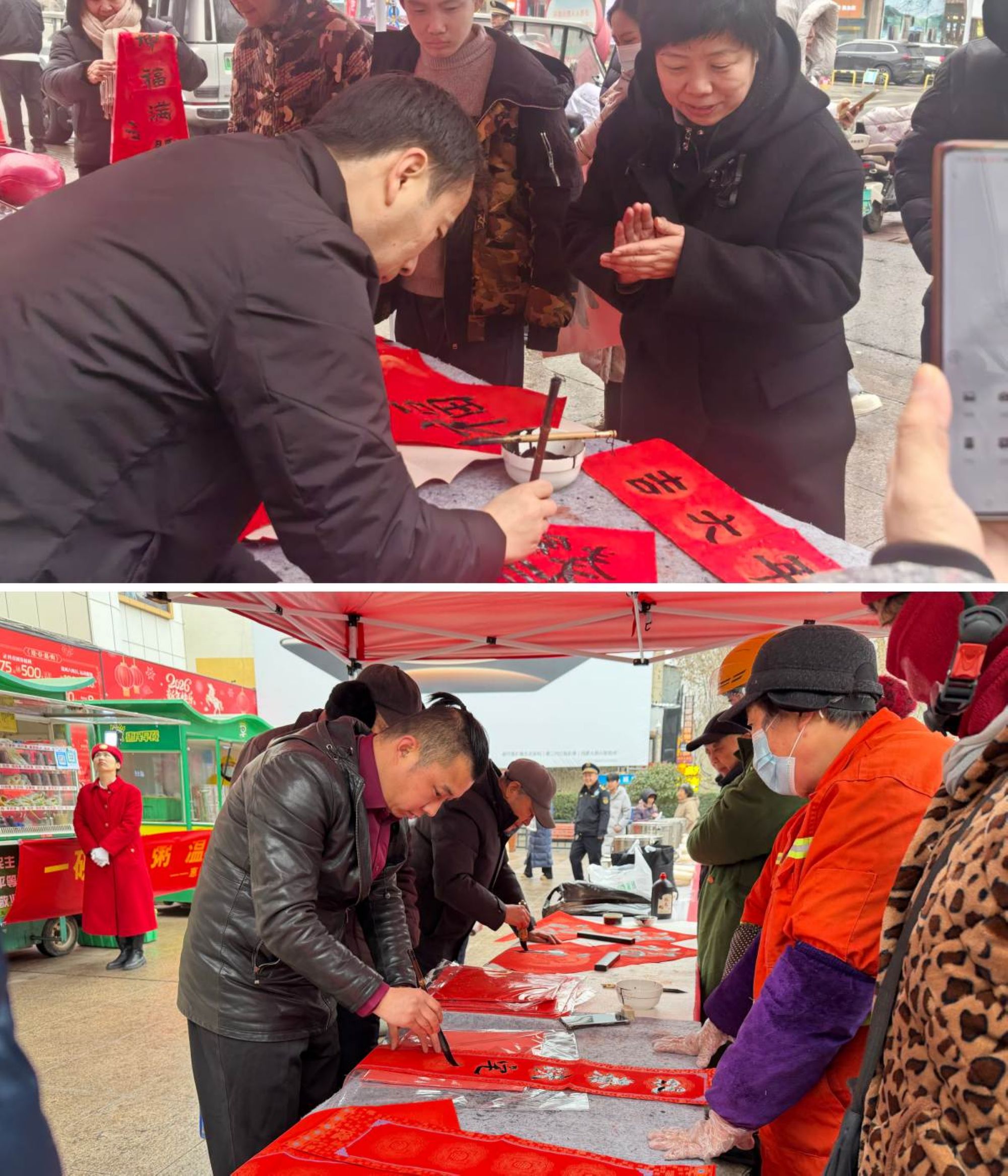 九州商業(yè)大廈解放路店門前廣場(chǎng)上一派熱鬧景象,在蘭山區(qū)綜合行政執(zhí)法局的指導(dǎo)下,九州商業(yè)大廈聯(lián)合惠民早餐、瑯琊篆刻書畫院開展“一碗臘八粥•一副暖心聯(lián)•情暖街區(qū)”公益活動(dòng)。
