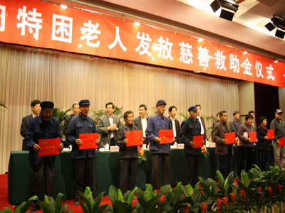 在我省第23個(gè)老人節(jié)和“九九”重陽(yáng)節(jié)之際,集團(tuán)與市老齡委、市慈善總會(huì)、臨沂日?qǐng)?bào)報(bào)業(yè)集團(tuán)等單位聯(lián)合舉行了“向特困老人發(fā)放慈善救助金”活動(dòng);顒(dòng)上為100名孤寡特困老人和100名百歲老人每人發(fā)放了1000元的救助慰問金。 作為老齡人口大市,我市重視發(fā)展老齡事業(yè),通過加強(qiáng)領(lǐng)導(dǎo),完善社會(huì)保障體系等措施,在全社會(huì)營(yíng)造了濃濃的敬老愛老助老氛圍。眾多愛心企業(yè)積極參與,推動(dòng)了我市老齡事業(yè)的發(fā)展。作為“臨沂市十大愛心企業(yè)”,集團(tuán)積極參與、支持全市老齡事業(yè)的發(fā)展,用實(shí)際行動(dòng)扶老、助老,向老年人奉獻(xiàn)愛心。 多年來,集團(tuán)在事業(yè)發(fā)展的同時(shí),始終牢記報(bào)效國(guó)家、回饋社會(huì)、投身公益的責(zé)任,積極投身慈善事業(yè)。通過開展慈善救助、“慈心一日捐”、“送溫暖”等一系列活動(dòng),積極參與到各類助學(xué)、助殘、賑災(zāi)、濟(jì)困等公益事業(yè)中來。幾年來,集團(tuán)在各項(xiàng)公益活動(dòng)累計(jì)捐款捐物達(dá)數(shù)百萬元,為推動(dòng)全市慈善事業(yè)的發(fā)展做出了重要貢獻(xiàn)。 “老吾老以及人之老”,關(guān)愛老人是我們中華民族的傳統(tǒng)美德,也是我們?nèi)鐣?huì)的共同責(zé)任。集團(tuán)此次向特困老人發(fā)放慈善救助金活動(dòng)是集團(tuán)用實(shí)際行動(dòng)關(guān)愛老人的具體體現(xiàn),有利于喚起全社會(huì)對(duì)尊老敬老的重視,有利于在全社會(huì)樹立尊老、敬老、愛老、助老的良好風(fēng)氣。 市委常委、市總工會(huì)主席林祥余,市人大顧問、市慈善總會(huì)名譽(yù)會(huì)長(zhǎng)李寶智,市政府副秘書長(zhǎng)沈孝生,市民政局局長(zhǎng)姜新利,市老齡辦主任聶成新,市慈善總會(huì)副會(huì)長(zhǎng)楊本渠,集團(tuán)董事長(zhǎng)楊沂城,黨委書記王佐文出席儀式并在主席臺(tái)就坐。
