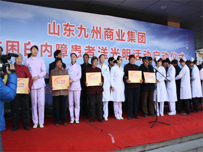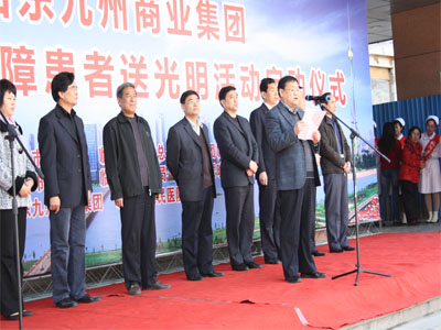 3月29日,山東九州商業(yè)集團(tuán)為貧困白內(nèi)障患者送光明活動(dòng)在市人民醫(yī)院眼科門診樓前舉行啟動(dòng)儀式。該活動(dòng)由集團(tuán)出資60萬(wàn)為我市600名貧困白內(nèi)障患者提供免費(fèi)手術(shù)。臨沂市慈善總會(huì)副會(huì)長(zhǎng)楊本渠、集團(tuán)董事長(zhǎng)楊沂城及市有關(guān)單位領(lǐng)導(dǎo)出席啟動(dòng)儀式。 據(jù)了解,本次活動(dòng)由市總工會(huì)、市慈善總會(huì)、共青團(tuán)臨沂市委、市婦聯(lián)、市民政局、市衛(wèi)生局和山東沂蒙晚報(bào)傳媒有限公司主辦,山東九州商業(yè)集團(tuán)、臨沂市人民醫(yī)院承辦。計(jì)劃投入資金60萬(wàn)元,為全市600名貧困白內(nèi)障患者提供免費(fèi)手術(shù)。定點(diǎn)醫(yī)院設(shè)在臨沂市人民醫(yī)院。凡申請(qǐng)接受免費(fèi)白內(nèi)障手術(shù)的貧困患者,可到所在地民政部門領(lǐng)取《山東九州商業(yè)集團(tuán)貧困白內(nèi)障患者報(bào)名表》,并在表上加蓋村(居委)、鄉(xiāng)鎮(zhèn)(辦事處)公章后,交縣(區(qū))民政局報(bào)市民政局慈善辦,統(tǒng)一安排手術(shù)。 [題圖:集團(tuán)董事長(zhǎng)楊沂城在啟動(dòng)儀式上講話]