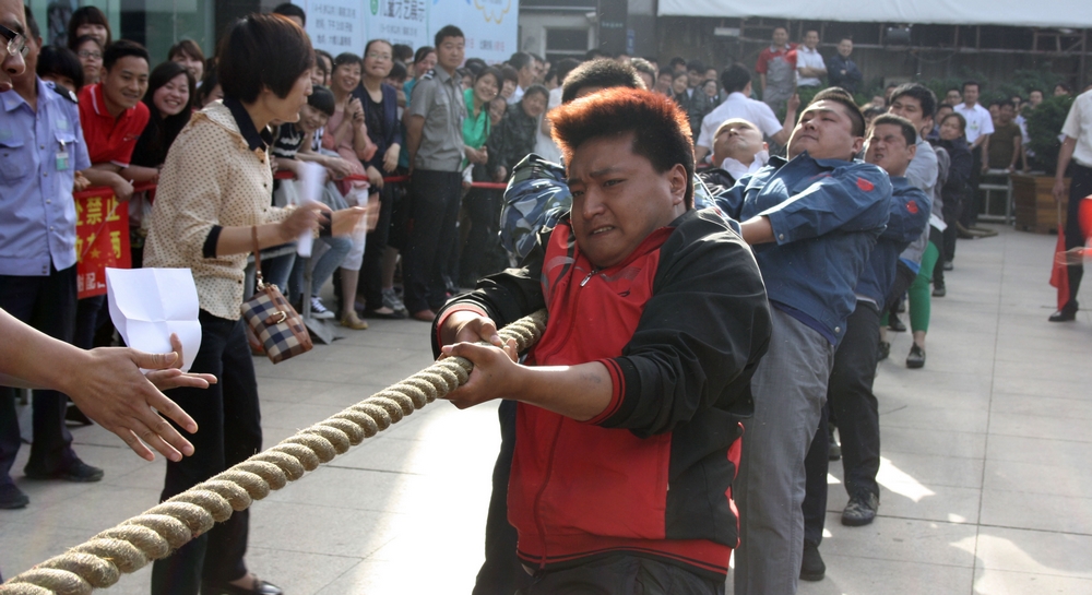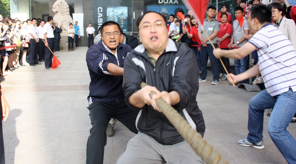 5月26日,集團(tuán)一年一度的拔河比賽在九州商業(yè)大廈門前廣場舉行。 本次拔河比賽共有六支代表隊(duì),每隊(duì)男、女各8名隊(duì)員參加比賽。經(jīng)過小組循環(huán)賽、半決賽和決賽,共十輪緊張激烈的比賽。最終,連鎖超市公司代表隊(duì)獲得冠軍,臨沂賓館代表隊(duì)和九州汽車銷售公司代表隊(duì)分獲二、三名,九州商業(yè)大廈代表隊(duì)、九州宜家佳代表隊(duì)、集團(tuán)行政代表隊(duì)分列第四至六名。 活動(dòng)的開展,豐富了員工文化生活,促進(jìn)了交流溝通。比賽現(xiàn)場,廣大員工積極拼搏、團(tuán)結(jié)協(xié)作,較好地展示了員工健康向上的精神風(fēng)貌和企業(yè)良好的形象。