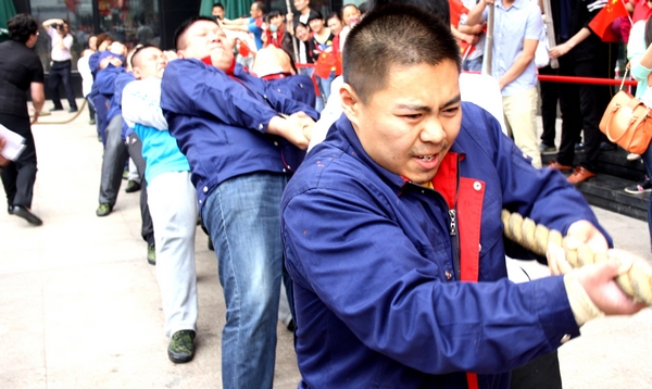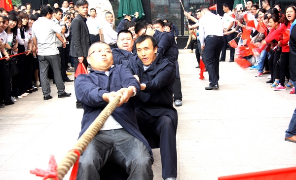 九州大廈代表隊(duì) 凝聚團(tuán)結(jié)的力量,展示協(xié)作的魅力。5月18日,集團(tuán)運(yùn)動(dòng)會(huì)拔河比賽項(xiàng)目在九州商業(yè)大廈門(mén)前廣場(chǎng)舉行。 本次比賽共有各經(jīng)營(yíng)單位和集團(tuán)行政支部組成的六支代表隊(duì)參加。每隊(duì)派出男女各8名運(yùn)動(dòng)員,經(jīng)過(guò)小組循環(huán)賽、半決賽和總決賽,共十輪緊張激烈的比賽,最終,連鎖超市公司代表隊(duì)獲得冠軍,臨沂賓館代表隊(duì)和九州大廈代表隊(duì)分獲二、三名,九州宜家佳代表隊(duì)、汽車(chē)銷(xiāo)售公司代表隊(duì)和集團(tuán)行政代表隊(duì)分列四至六名。 通過(guò)舉辦拔河比賽活動(dòng),不僅豐富了員工的文化生活,也培養(yǎng)了大家團(tuán)結(jié)協(xié)作、拼搏進(jìn)取、永不放棄、堅(jiān)持到底的精神。