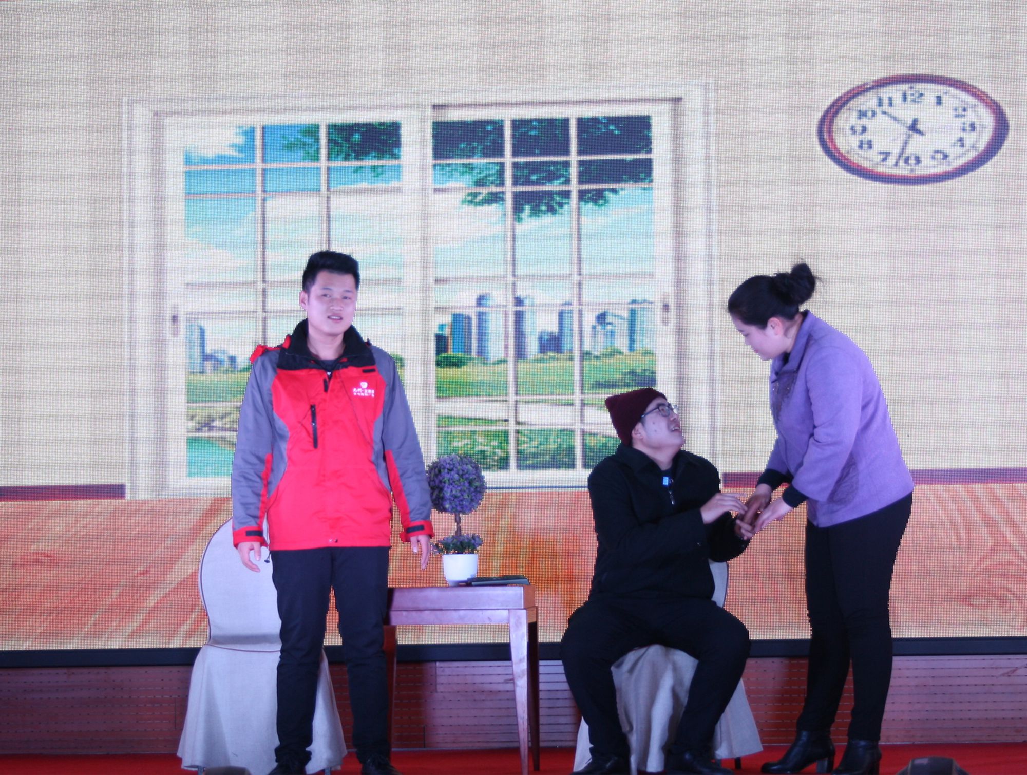 新春伊始,萬象更新。1月13日晚,九州集團新春文藝晚會在臨沂賓館隆重舉行。集團領(lǐng)導(dǎo)、員工及家屬、退休職工等400余人一起觀看了文藝晚會。 文藝晚會在舞蹈《盛世歡歌》中拉開序幕。三句半《九州大發(fā)展》以膾炙人口的語言、環(huán)環(huán)相扣的節(jié)奏,引來現(xiàn)場觀眾的陣陣掌聲。小品《家庭作業(yè)》講述了兩代人通過家庭作業(yè)給父母洗腳的故事,感悟到了生活的真諦。詩朗誦《無論多遠(yuǎn),我們都在身邊》,通過起承轉(zhuǎn)合、抑揚頓挫的朗誦向我們展示了汽貿(mào)公司一路發(fā)展的歷程,表達了對未來發(fā)展的希冀和展望。小品《快遞奇緣》訴說了九州網(wǎng)上商城配送員與顧客的奇妙緣分,折射了網(wǎng)上商城的發(fā)展為廣大市民帶來的便利。舞蹈《月光下的鳳尾竹》《我愛你中國》更是帶給了我們一場美妙的視覺盛宴。經(jīng)過兩個半小時異彩紛呈的節(jié)目表演,最后,晚會在熱鬧非凡的舞蹈《合家歡》中落下帷幕。 文藝晚會由各單位精心選出的的17個節(jié)目組成,節(jié)目形式多樣,內(nèi)容精彩,多角度展現(xiàn)了九州人朝氣蓬勃,奮發(fā)向上的精神風(fēng)貌,展現(xiàn)企業(yè)的新面貌、新變化,歌頌了企業(yè)的新發(fā)展、新未來。(集團辦公室 劉傳芳)