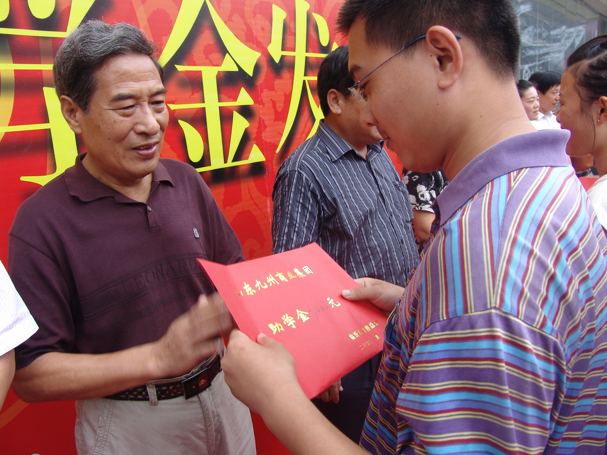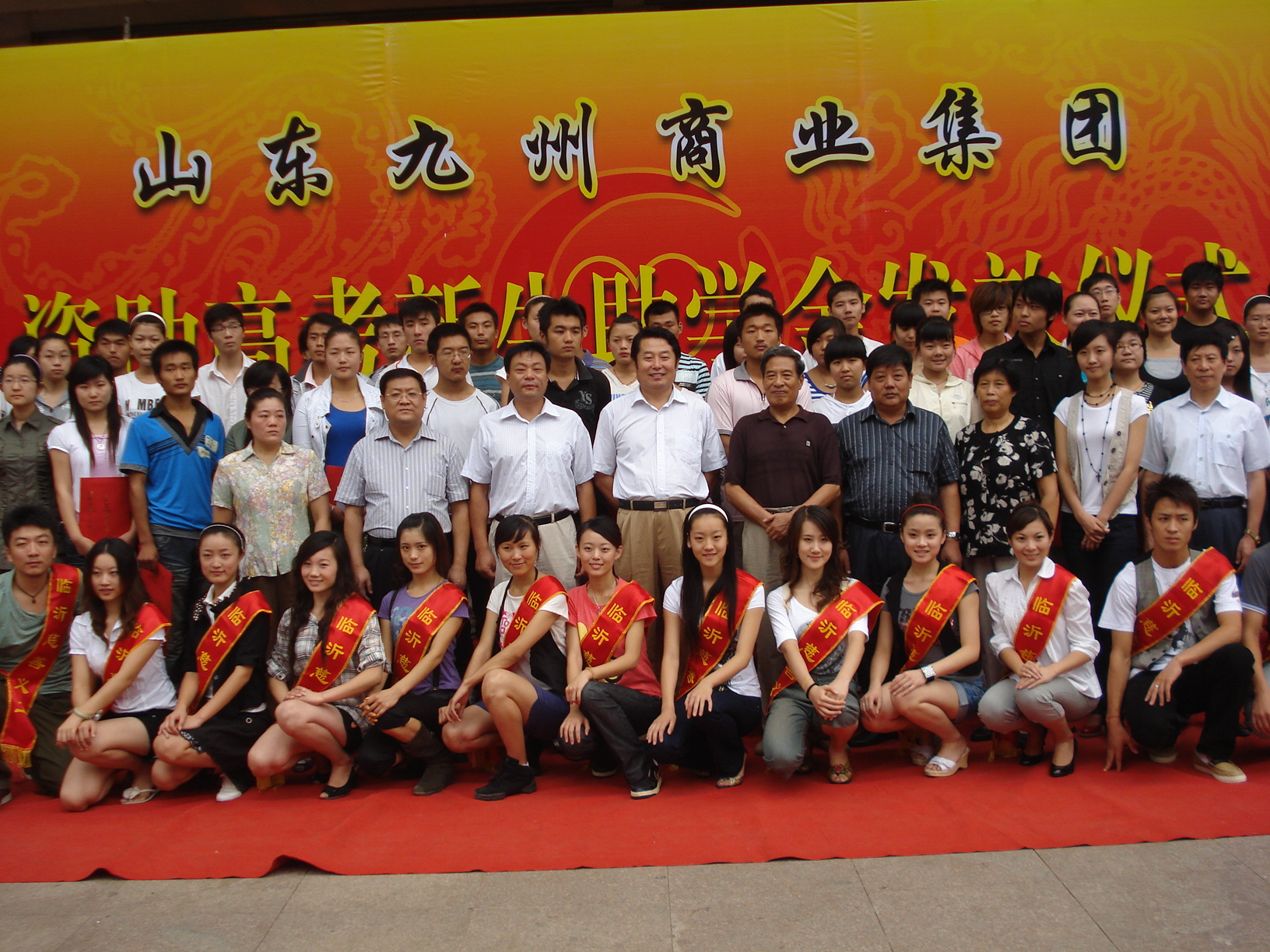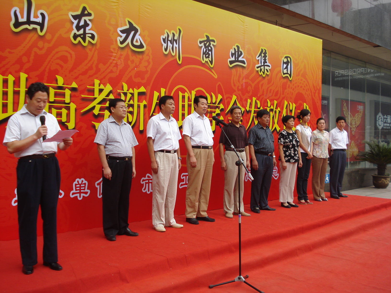 (儀式結(jié)束后領(lǐng)導(dǎo)與受助大學(xué)生合影留念) 8月25日上午,集團(tuán)在九州商業(yè)大廈前舉行山東九州商業(yè)集團(tuán)資助高考新生助學(xué)金發(fā)放儀式。50名受助大學(xué)生每人獲得了3000元的九州商業(yè)集團(tuán)助學(xué)金。市總工會(huì)黨組副書記、副主席王向群,市總工會(huì)黨組成員、副調(diào)研員張濤,市民政局副局長(zhǎng)、市慈善總會(huì)副會(huì)長(zhǎng)兼秘書長(zhǎng)朱步君,市總工會(huì)生產(chǎn)保障部部長(zhǎng)王秀麗,臨沂市城市形象大使姚宇,以及集團(tuán)領(lǐng)導(dǎo)楊本渠、張素芬、楊沂城、王佐文等同志參加助學(xué)金發(fā)放儀式。 集團(tuán)總經(jīng)理?xiàng)钜食恰⑹锌偣?huì)副主席王向群、受助大學(xué)生代表、受助大學(xué)生家長(zhǎng)代表分別在儀式上講話。楊總在講話中表示,企業(yè)在自身不斷發(fā)展的同時(shí),牢記報(bào)效國(guó)家、回饋社會(huì)、積極投身公益的使命,勇于承擔(dān)社會(huì)責(zé)任,熱心支持慈善事業(yè)。多年來(lái)集團(tuán)積極參與各類助學(xué)、助殘、救災(zāi)、濟(jì)困等公益活動(dòng),累計(jì)捐款捐物達(dá)數(shù)百萬(wàn)元,受到社會(huì)各界的一致好評(píng)。楊總說(shuō),大學(xué)生是國(guó)家寶貴的人才資源,是民族的希望、祖國(guó)的未來(lái),肩負(fù)著全面建設(shè)小康社會(huì)、努力構(gòu)建和諧社會(huì)、實(shí)現(xiàn)中華民族偉大復(fù)興的歷史重任。楊總勉勵(lì)受助的大學(xué)生珍惜大學(xué)的美好時(shí)光,樹(shù)立遠(yuǎn)大理想,努力學(xué)習(xí)文化知識(shí),以知識(shí)改變命運(yùn),用優(yōu)異的成績(jī)、過(guò)硬的本領(lǐng)奉獻(xiàn)社會(huì)、報(bào)效祖國(guó)、建設(shè)家鄉(xiāng)。 市總工會(huì)副主席王向群在講話中首先向楊本渠董事長(zhǎng)及九州商業(yè)集團(tuán)多年來(lái)積極獻(xiàn)身公益事業(yè)表示了感謝。他勉勵(lì)受助的大學(xué)生珍惜大學(xué)生活,不忘社會(huì)各界的幫助,努力學(xué)習(xí),回報(bào)社會(huì)。他希望更多的企業(yè)投身到社會(huì)慈善事業(yè)中來(lái),讓更多的弱勢(shì)群體享受到祖國(guó)大家庭的溫暖。