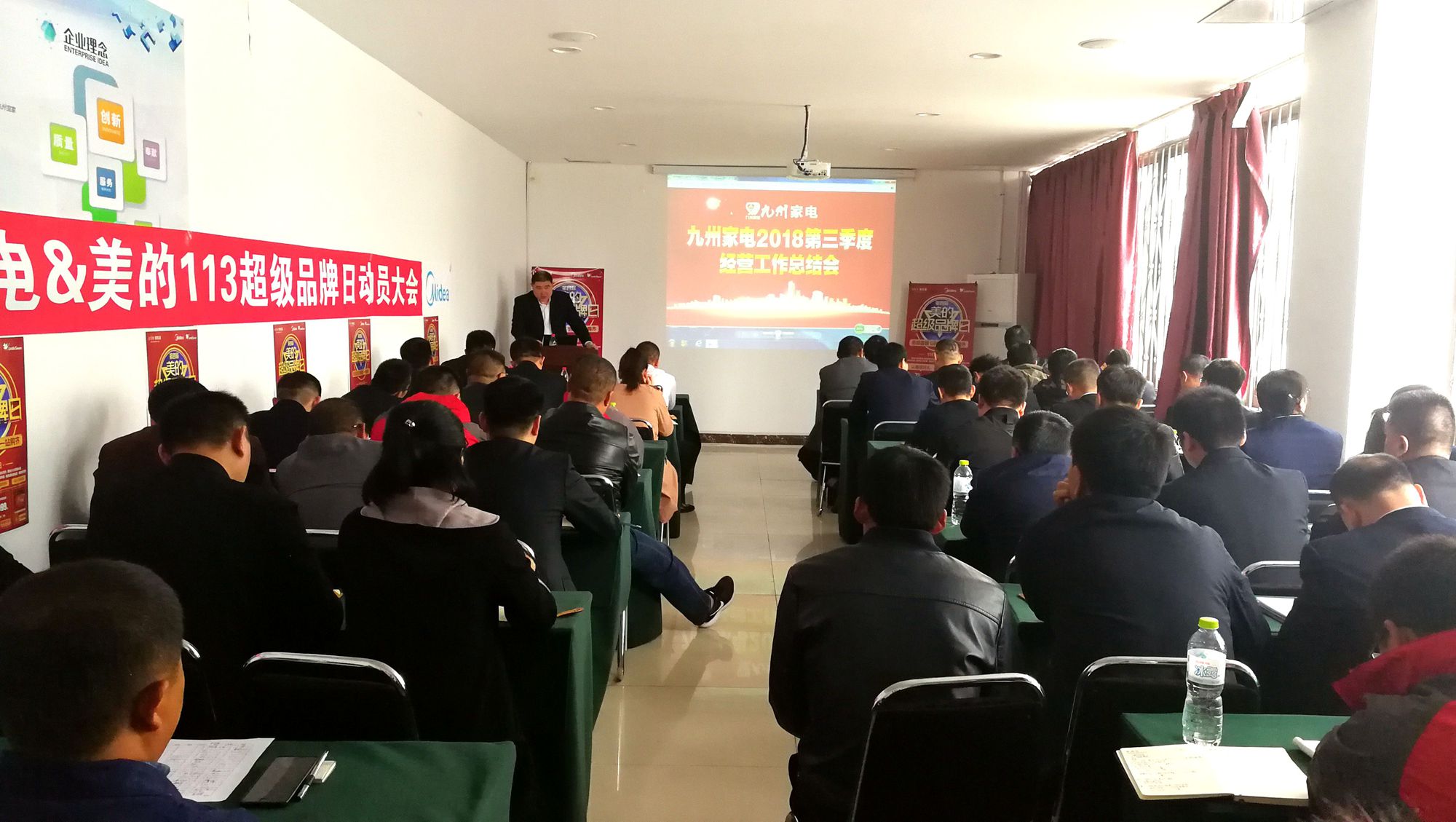 10月22日上午9時,九州家電2018年三季度經(jīng)營工作總結(jié)大會在解放路店二樓會議室召開,九州家電各部門主管及以上管理人員70余人參加了會議。 會上,九州家電副總經(jīng)理張淑瑞對九州家電1至9月份及3季度經(jīng)營工作情況作了總結(jié)報(bào)告。通報(bào)了九州家電整體經(jīng)營情況及各經(jīng)營部門的經(jīng)營指標(biāo)推進(jìn)情況,并對各經(jīng)營部門在三季度工作中的亮點(diǎn)和存在的不足進(jìn)行了深入地分析講解,同時為四季度工作目標(biāo)提出了要求、明確了方向。 九州家電總經(jīng)理王志軍作了總結(jié)發(fā)言,他對家電行業(yè)目前的市場情況進(jìn)行了分析,結(jié)合市場情況對九州家電自身的經(jīng)營發(fā)展情況進(jìn)行了點(diǎn)評,在肯定大家共同努力所取得成績的同時,重點(diǎn)對各部門存在的問題予以剖析,要求全體經(jīng)營管理人員必須時刻保持清醒的頭腦,不斷提升自己的經(jīng)營管理水平,凝心聚力,不斷提升團(tuán)隊(duì)的服務(wù)技能,要勇于擔(dān)當(dāng),在困難面前做好團(tuán)隊(duì)的帶頭人和操盤手,敢于直面問題,方能不斷前行。(九州家電綜合辦 徐云)