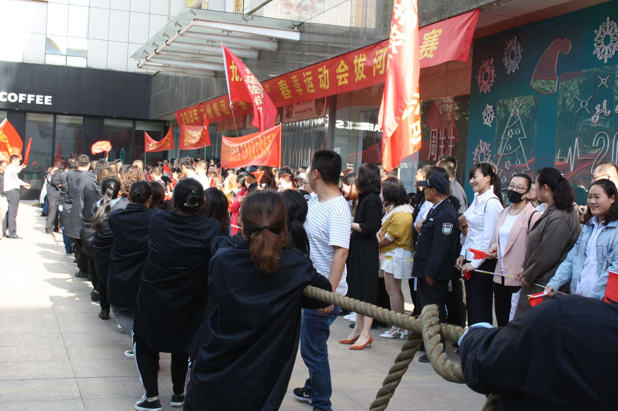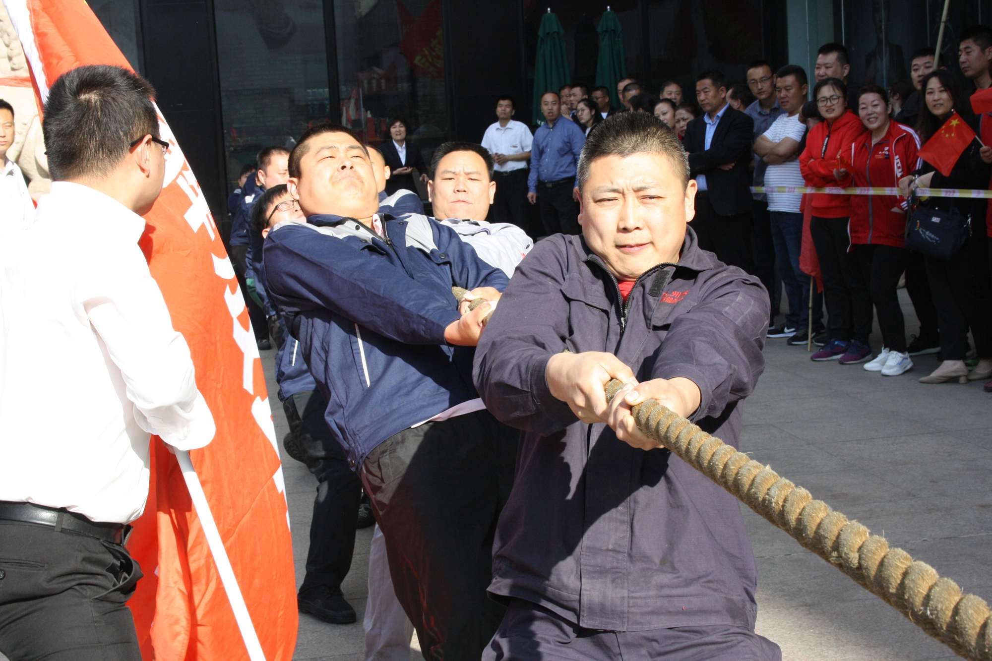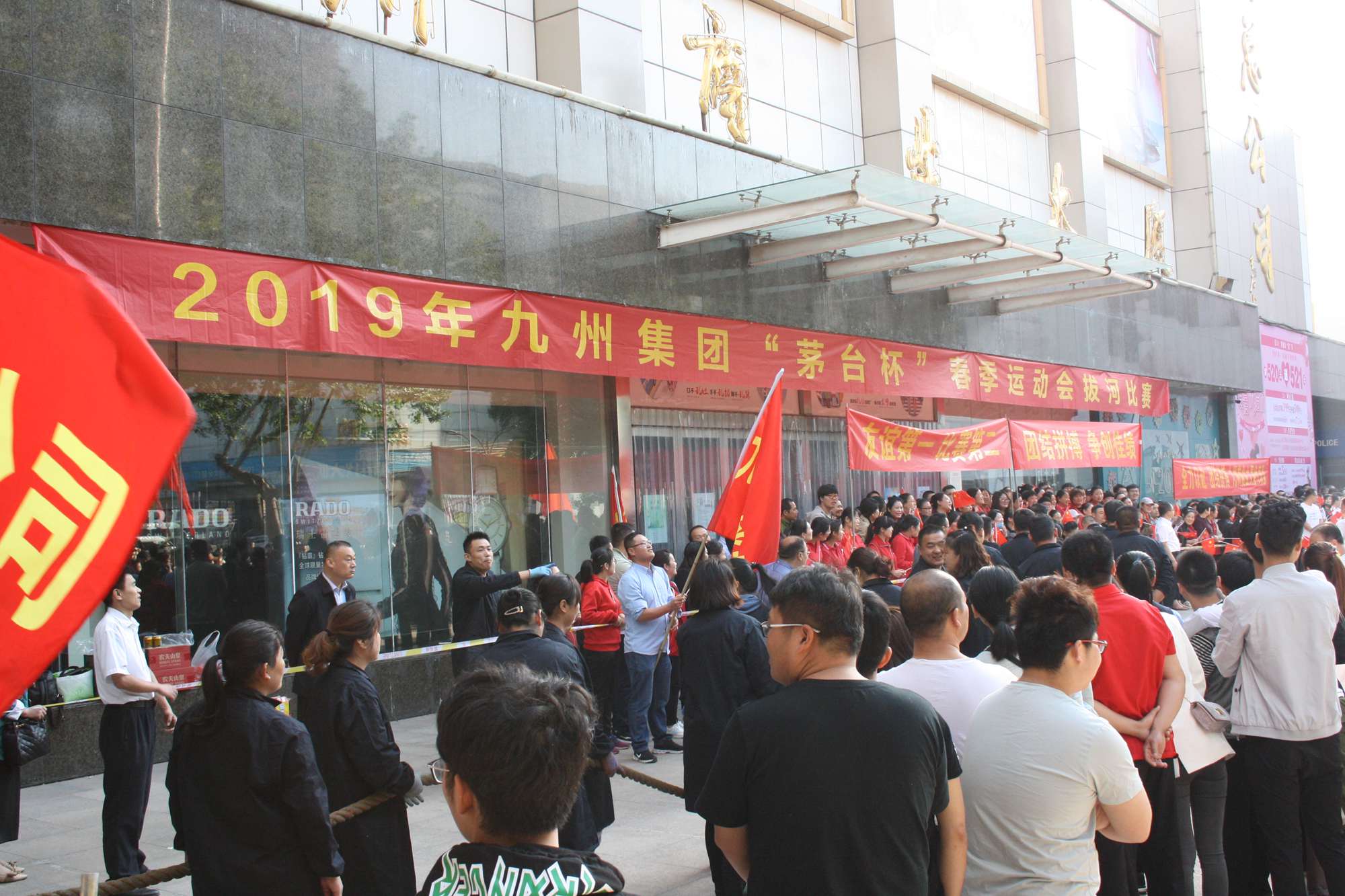 5月21日上午,九州集團2019年運動會拔河比賽項目在九州大廈解放路店門前廣場舉行。來自各經(jīng)營單位和集團行政的六支代表隊參加了比賽。 整潔的街道,翠綠的樹木,清晨的城市少了喧嘩,多了一份安靜,此刻九州大廈門前廣場卻熱鬧非凡,比賽現(xiàn)場被激昂的標語環(huán)繞,每個人都熱情高漲。比賽尚未開始時,雙方參賽隊員就已經(jīng)進入了戰(zhàn)斗狀態(tài),雙手緊握麻繩,雙腳用力著地,身體向后微傾,齊心協(xié)力擰成了一股繩。哨聲一響,雙方口號震天,有的隊員臉憋得通紅卻絲毫不放松,有的隊員干脆閉上眼睛卯足了勁兒往后拉。場下的啦啦隊也不甘落后,加油聲、吶喊聲、助威聲響徹四周。經(jīng)過多輪比拼,臨沂賓館代表隊憑借強大的實力,嫻熟的比賽技術(shù)奪得冠軍,九州大廈代表隊和超市公司代表隊分獲亞軍和季軍,汽貿(mào)公司代表隊、九州家電代表隊和集團行政代表隊分獲第四、五、六名。(文/劉文靜)