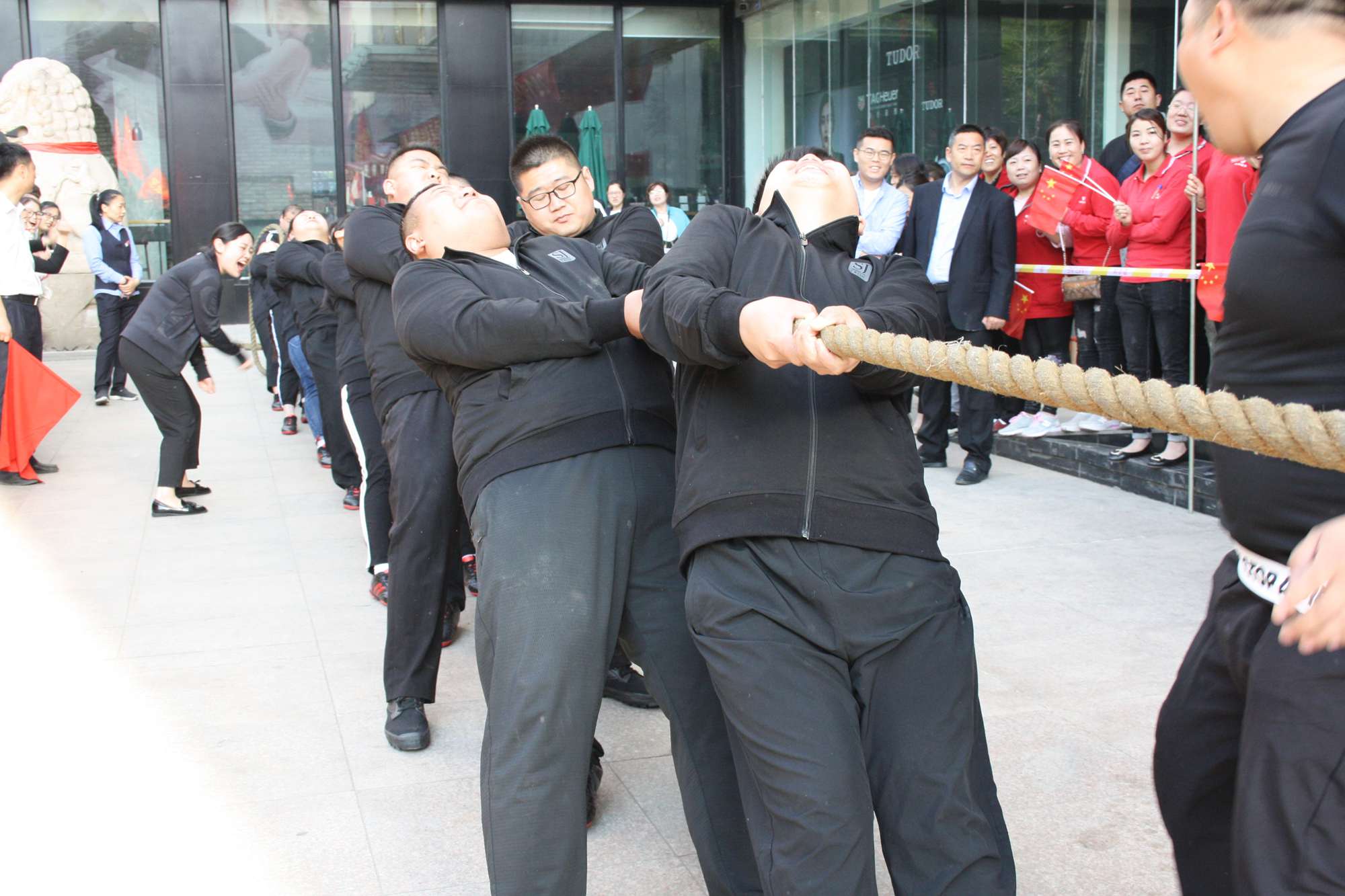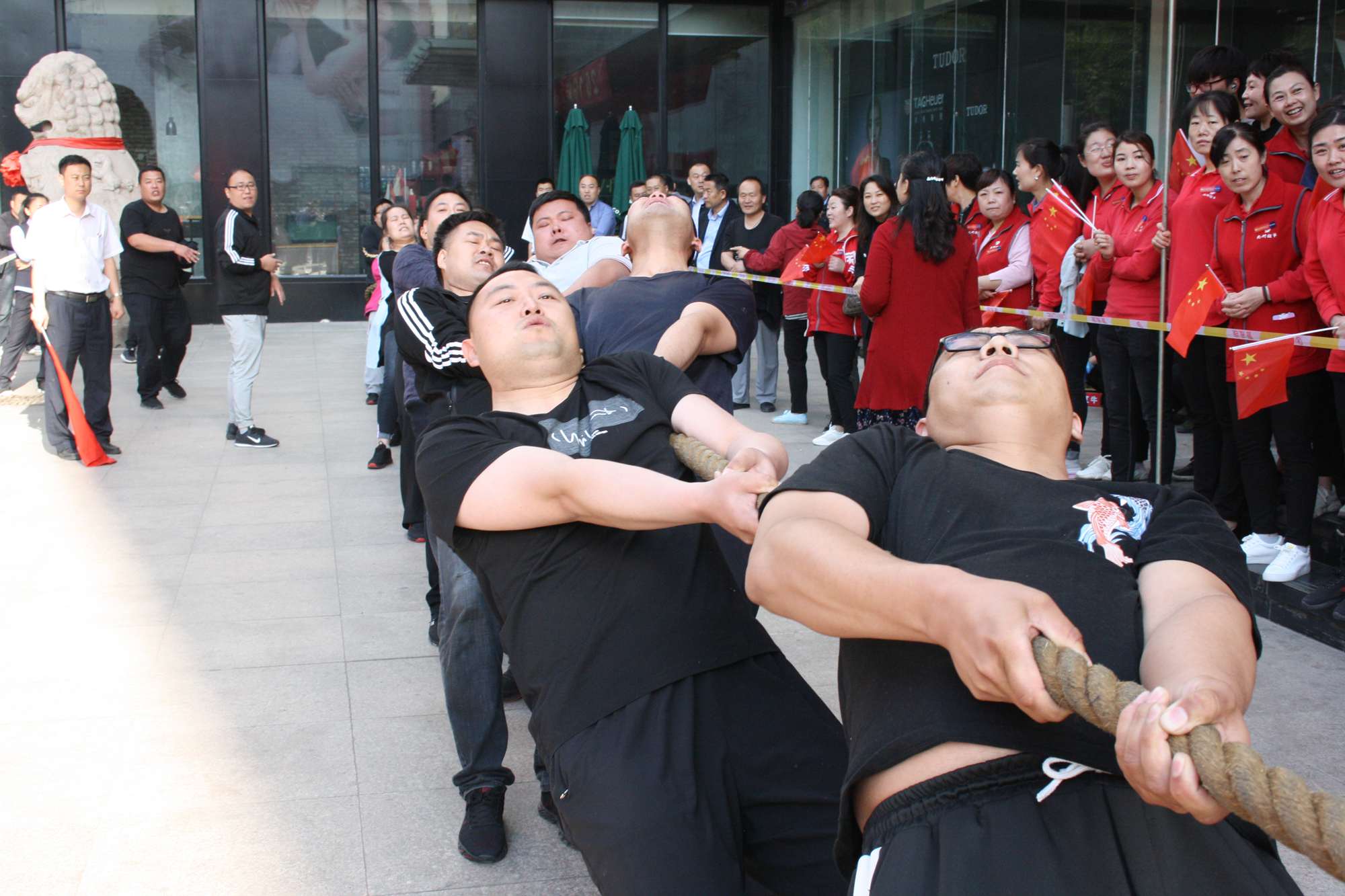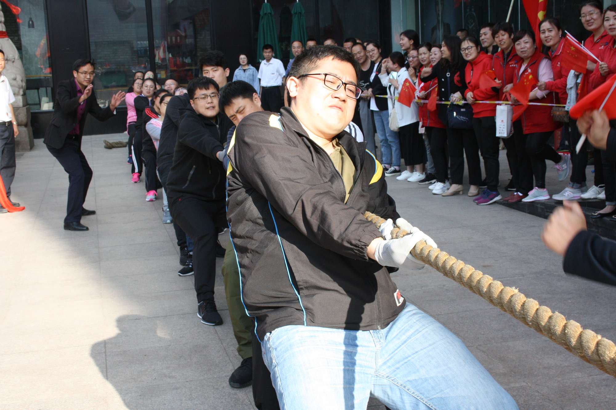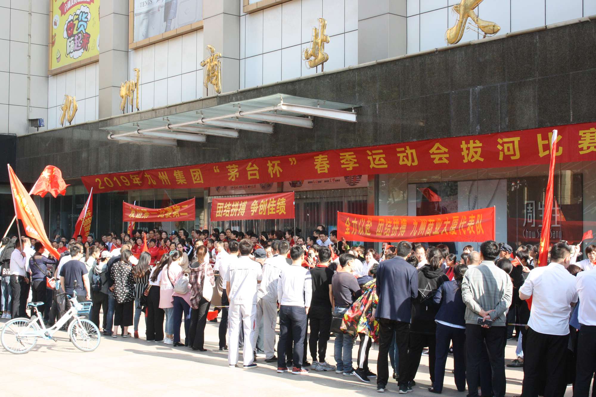5月21日上午,九州集團2019年運動會拔河比賽項目在九州大廈解放路店門前廣場舉行。來自各經(jīng)營單位和集團行政的六支代表隊參加了比賽。 整潔的街道,翠綠的樹木,清晨的城市少了喧嘩,多了一份安靜,此刻九州大廈門前廣場卻熱鬧非凡,比賽現(xiàn)場被激昂的標語環(huán)繞,每個人都熱情高漲。比賽尚未開始時,雙方參賽隊員就已經(jīng)進入了戰(zhàn)斗狀態(tài),雙手緊握麻繩,雙腳用力著地,身體向后微傾,齊心協(xié)力擰成了一股繩。哨聲一響,雙方口號震天,有的隊員臉憋得通紅卻絲毫不放松,有的隊員干脆閉上眼睛卯足了勁兒往后拉。場下的啦啦隊也不甘落后,加油聲、吶喊聲、助威聲響徹四周。經(jīng)過多輪比拼,臨沂賓館代表隊憑借強大的實力,嫻熟的比賽技術(shù)奪得冠軍,九州大廈代表隊和超市公司代表隊分獲亞軍和季軍,汽貿(mào)公司代表隊、九州家電代表隊和集團行政代表隊分獲第四、五、六名。(文/劉文靜)