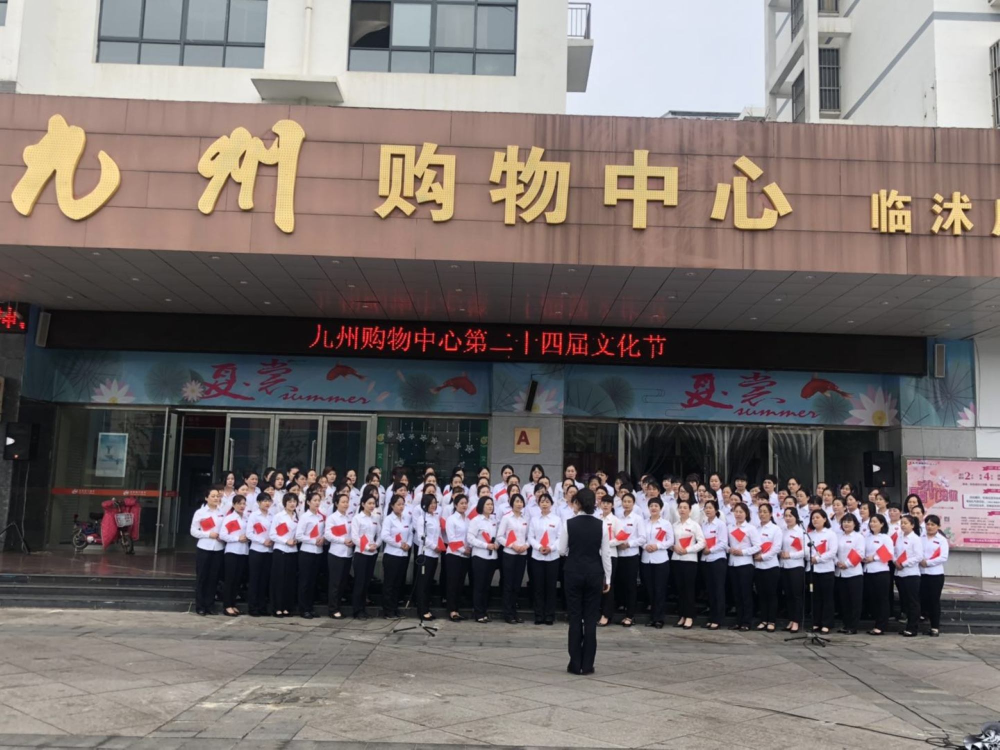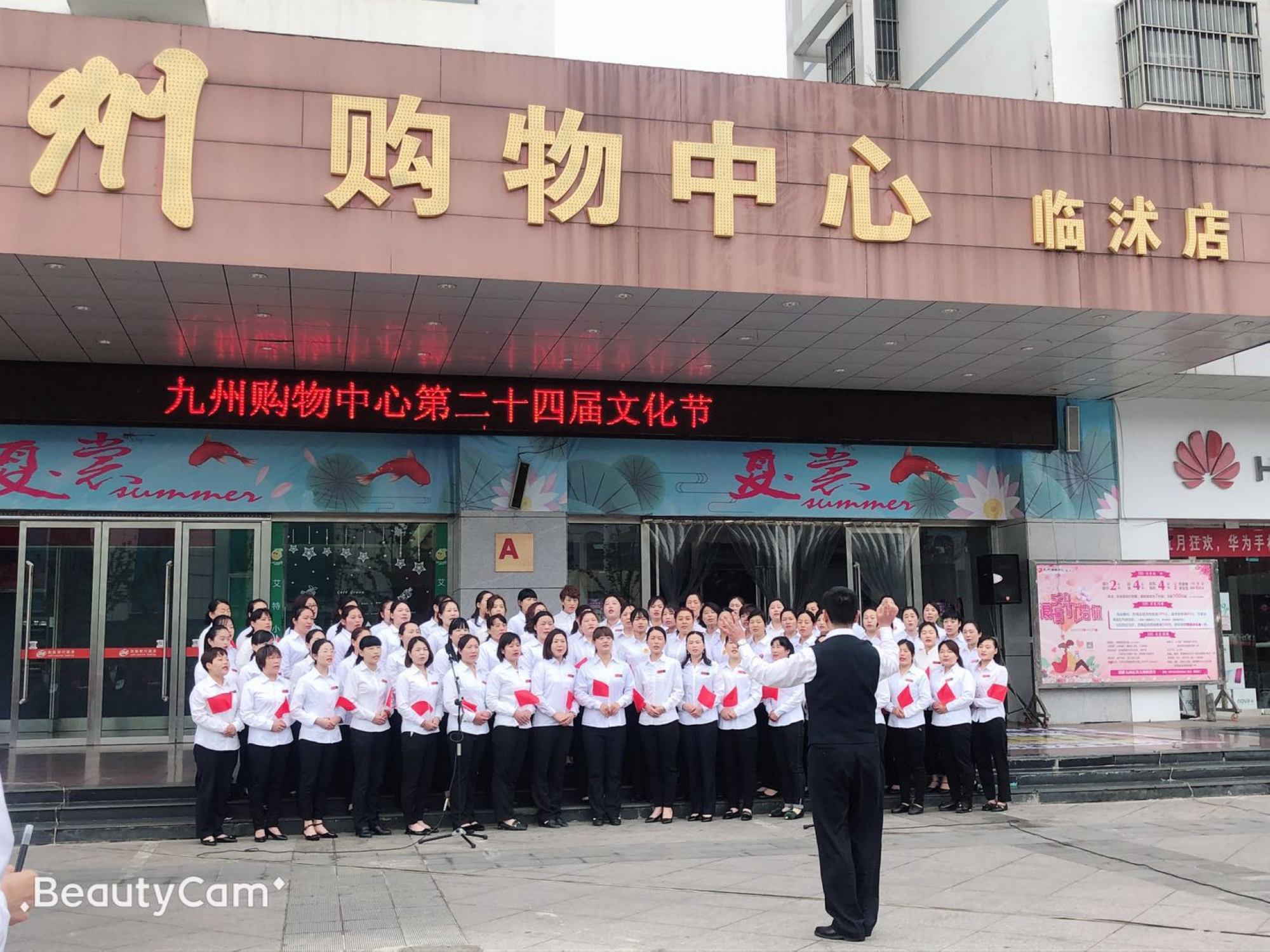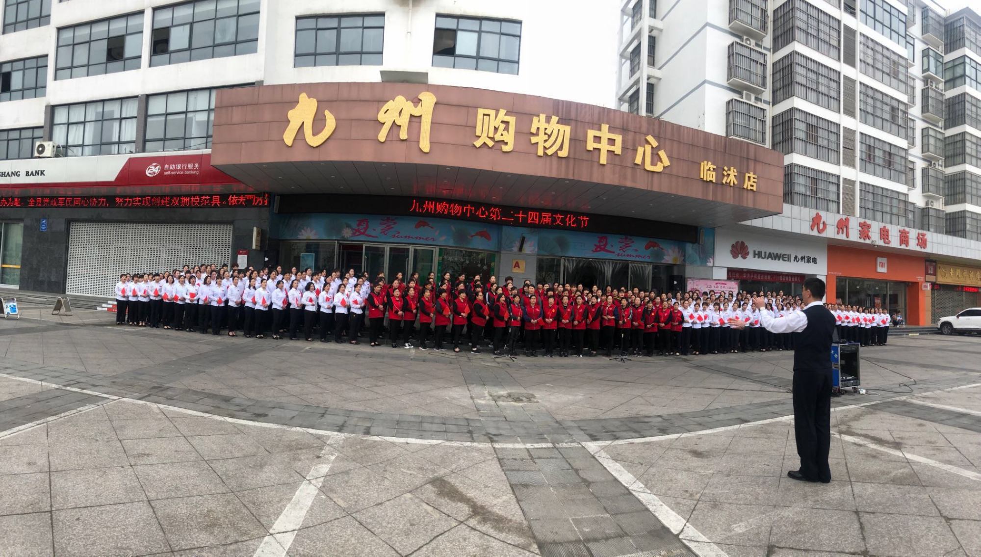 5月18日上午,九州大廈臨沭店在門前廣場舉行歌詠比賽。一大早,全體員工按照要求統(tǒng)一著裝,畫著精致的淡妝在門前廣場集合,為即將開始的比賽做最后的排練。主持人認真的背著主持詞,一遍一遍重復(fù)練習(xí)。 伴隨著《九州集團之歌》的音樂,比賽正式拉開了帷幕,首先是臨沭店百貨一部給大家?guī)淼摹洞笾袊,接著是百貨二部的《愛我中華》,最后超市壓軸帶來了《歌唱祖國》。唱到最后,全體員工一起加入進來,齊聲高歌,洪亮的歌聲引來了路人的駐足圍觀。活動的開展展現(xiàn)了九州人積極向上的精神風(fēng)貌,樹立了良好的企業(yè)形象。(文圖/吳淑芳)