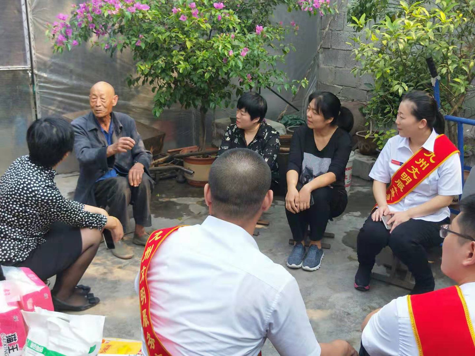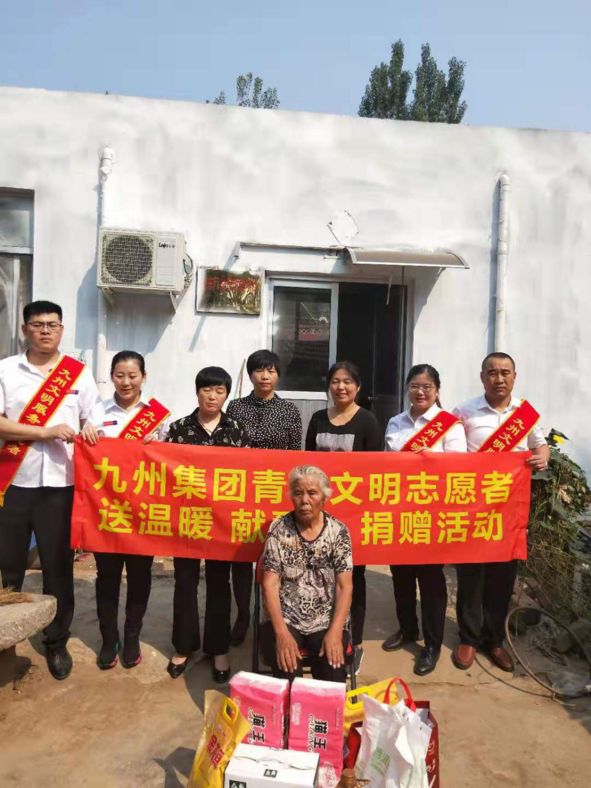 9月29日上午, 在臨沂市河?xùn)|區(qū)紅十字會工作人員的陪同下,超市公司副總經(jīng)理鄭麗帶領(lǐng)青年志愿者們走進(jìn)河?xùn)|區(qū)湯頭鎮(zhèn)福利莊,開展“送溫暖,獻(xiàn)愛心”社會公益活動(dòng),為部分貧困戶捐贈(zèng)了花生油、大米、面粉等生活用品。 每到一戶,志愿者們都詳細(xì)詢問他們的身體、生活、家庭收入情況,以及當(dāng)前遇到的困難和生活上的需求等,鼓勵(lì)他們樹立信心、克服困難。對九州給予的關(guān)懷與溫暖,老人們感激之情溢于言表。今后,全體九州人將積極承擔(dān)社會責(zé)任,以實(shí)際行動(dòng)扶貧濟(jì)困,用真情溫暖他人。 (文圖/王林娜)