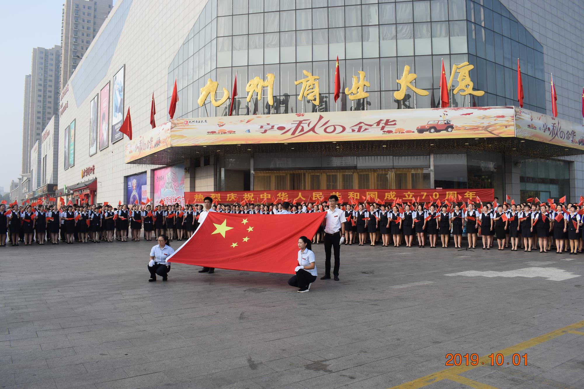 10月1日上午,九州商業(yè)大廈沂水區(qū)域門店分別在各店門前廣場舉行了慶國慶合唱活動。先后合唱了《我和我的祖國》、《九州集團(tuán)之歌》等歌曲。
