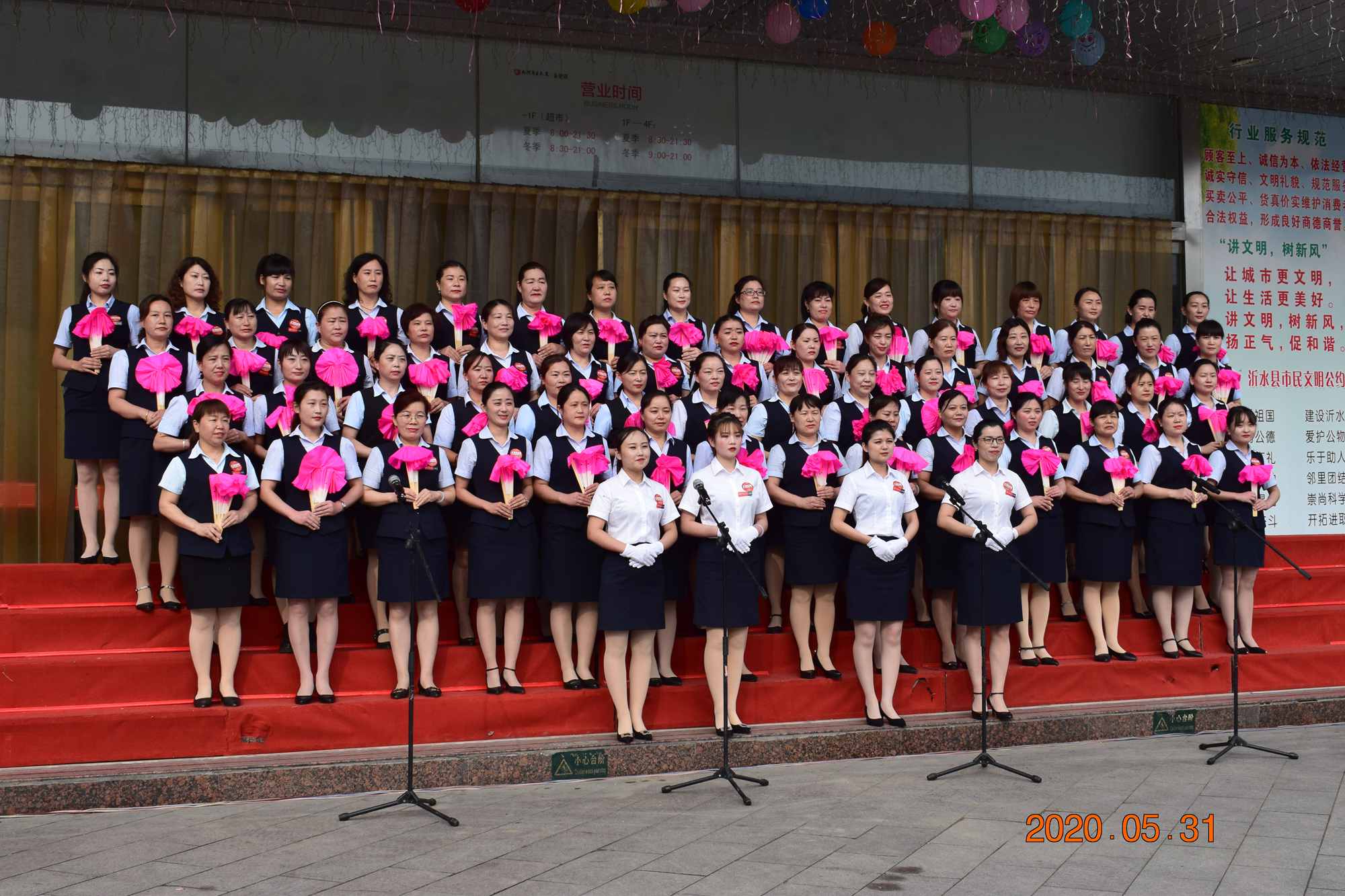 為慶祝九州商業(yè)大廈長(zhǎng)安店開(kāi)業(yè)6周年,5月31日早上,大廈沂水區(qū)域門(mén)店在長(zhǎng)安店門(mén)前廣場(chǎng)舉行了盛大的合唱活動(dòng)。