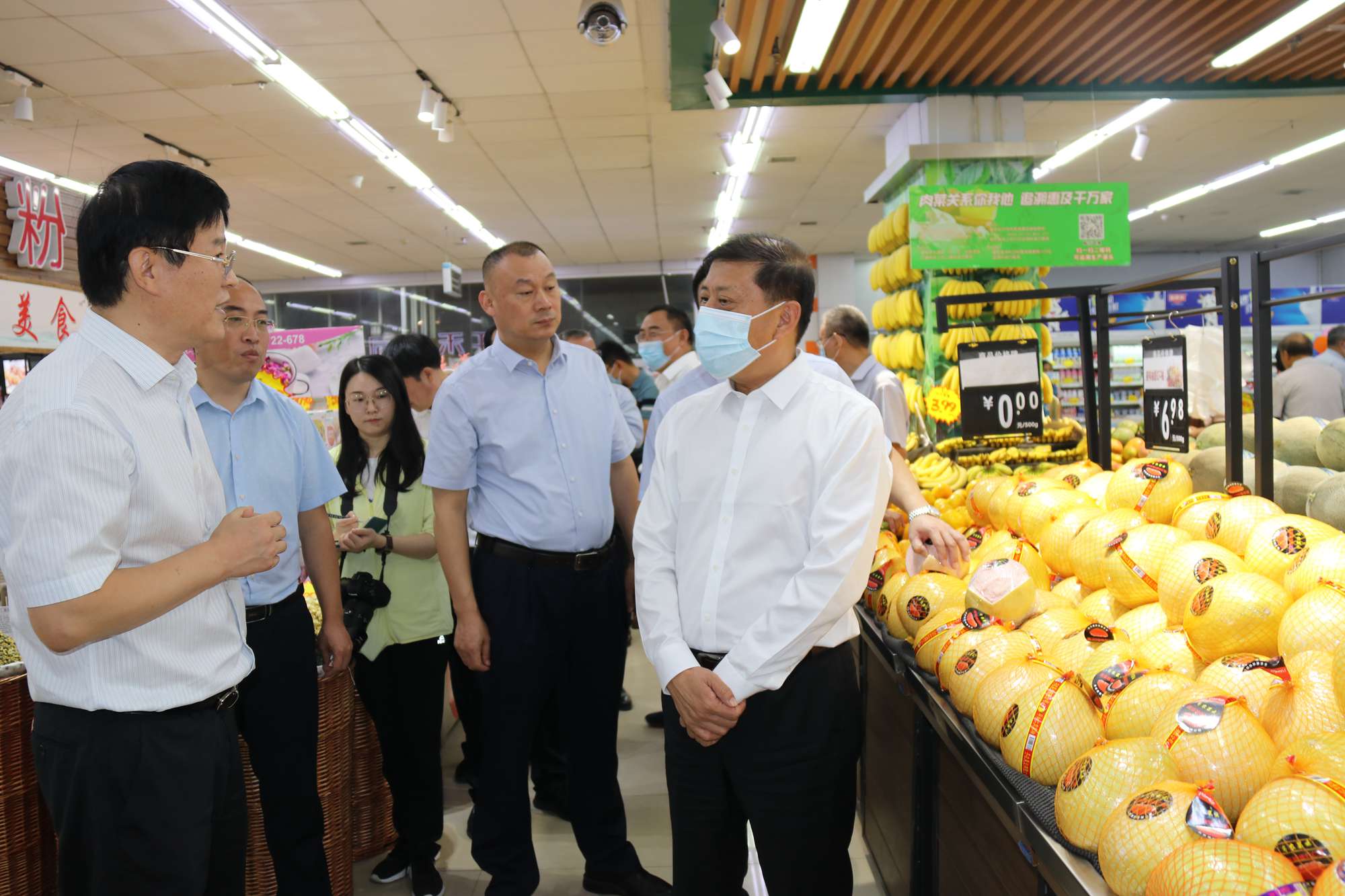 9月29日上午,臨沂市委書記王安德到九州購(gòu)物中心齊魯園店檢查節(jié)日食品安全工作。副市長(zhǎng)劉賢軍,市商務(wù)局黨組書記、局長(zhǎng)張洪永,市市場(chǎng)監(jiān)督管理局黨組書記、局長(zhǎng)黃杰陪同。集團(tuán)董事長(zhǎng)、總經(jīng)理?xiàng)钣罇|,超市公司總經(jīng)理李國(guó)等參加活動(dòng)并匯報(bào)工作。