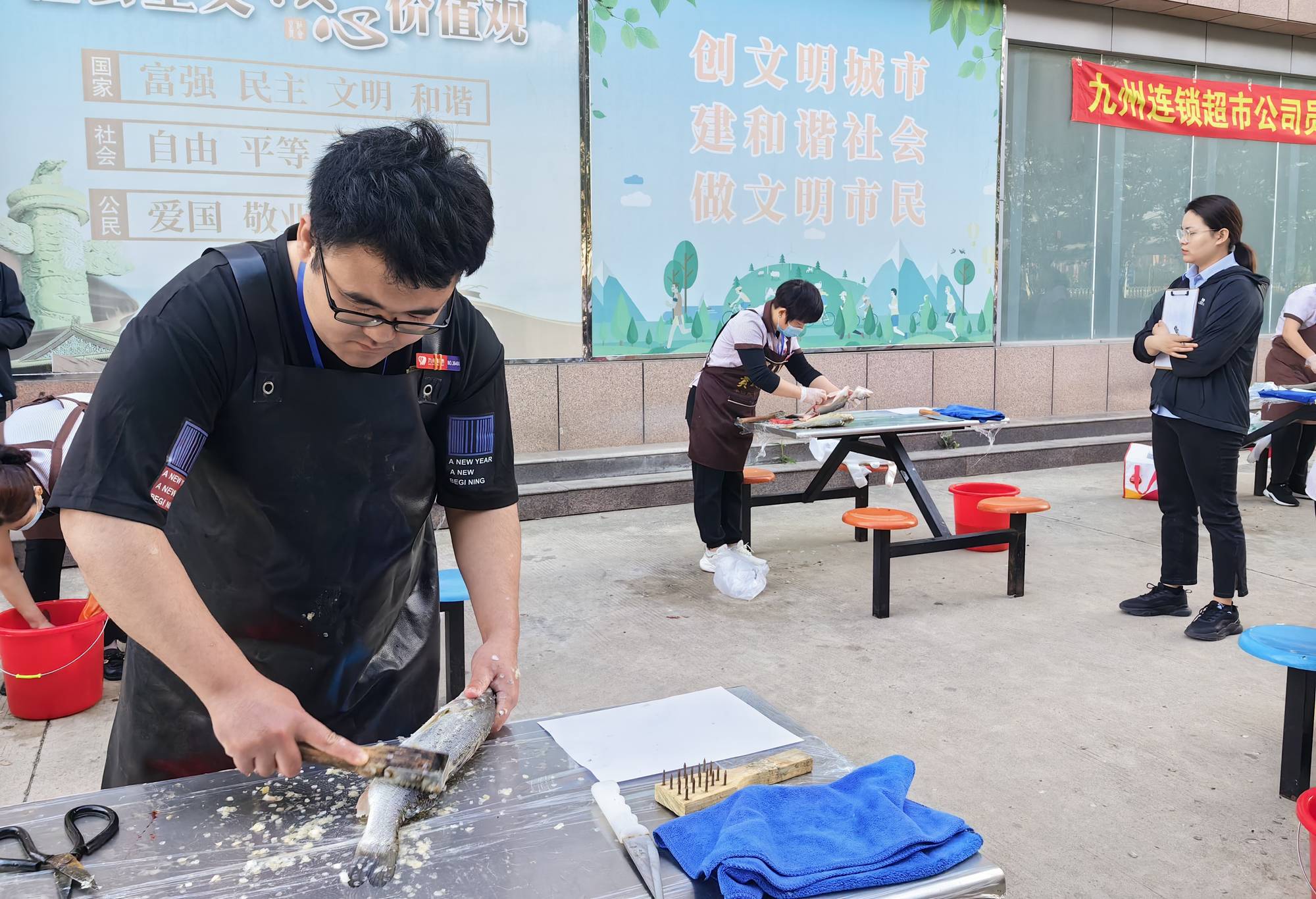 5月17日上午,超市公司在配送中心舉辦了魚宰殺技能比賽,超市公司各門店共計31名員工參加。比賽過程中,選手根據(jù)比賽要求對分配的淡水活魚和冰鮮海魚進(jìn)行宰殺和清理,要求操作流程規(guī)范、臺面衛(wèi)生整潔、商品賣相符合要求,考驗了選手靈活敏捷的處理能力和操作的規(guī)范性。經(jīng)過綜合評比,王平莊店李懷梅獲得第一名,月亮灣店劉曉飛獲得第二名,紅旗路店顏丙衛(wèi)獲得第三名。