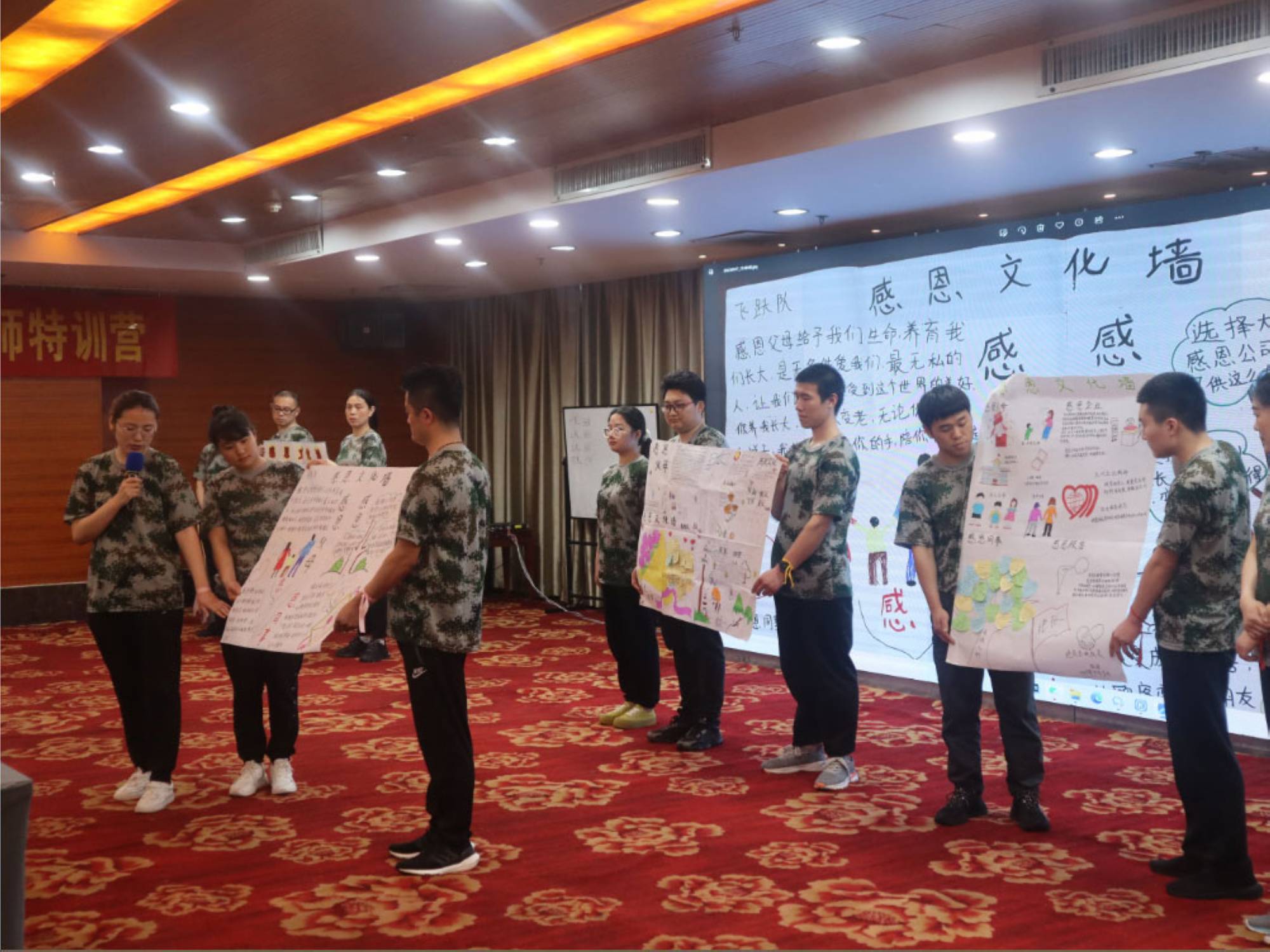 在三天兩夜的培訓(xùn)中,各組通過團隊建設(shè)、項目錘煉來突破自我、逐漸融合,打造團隊凝聚力。在“我是誰”環(huán)節(jié),每位隊員挖掘自身的缺點、短板,直面自身的不足,消除前進道路上的阻礙。在“感恩”環(huán)節(jié),通過場景設(shè)置,讓隊員體會父母的養(yǎng)育之恩、企業(yè)的培育之情,感恩父母、感恩企業(yè),做一名懂得感恩的人。在“領(lǐng)袖風采”環(huán)節(jié),各隊依次從1至100報數(shù),發(fā)生錯報、漏報、搶報等情況即懲罰隊長,讓隊員體驗在日常工作中管理人員所承擔的責任。在“人行榜樣”環(huán)節(jié),隊員兩兩相對,雙手相互舉高支撐,站立90分鐘,隊員之間相互鼓勵,把簡單的工作長時間堅持做好,打造堅持不放棄的團隊。在“AB穿越”環(huán)節(jié),隊員們?yōu)閷崿F(xiàn)目標,開拓思維、大膽創(chuàng)新。在“同心桿”環(huán)節(jié),各隊統(tǒng)一動作、統(tǒng)一標準,克服團隊干擾,打造標準一致、行動一致的團隊。