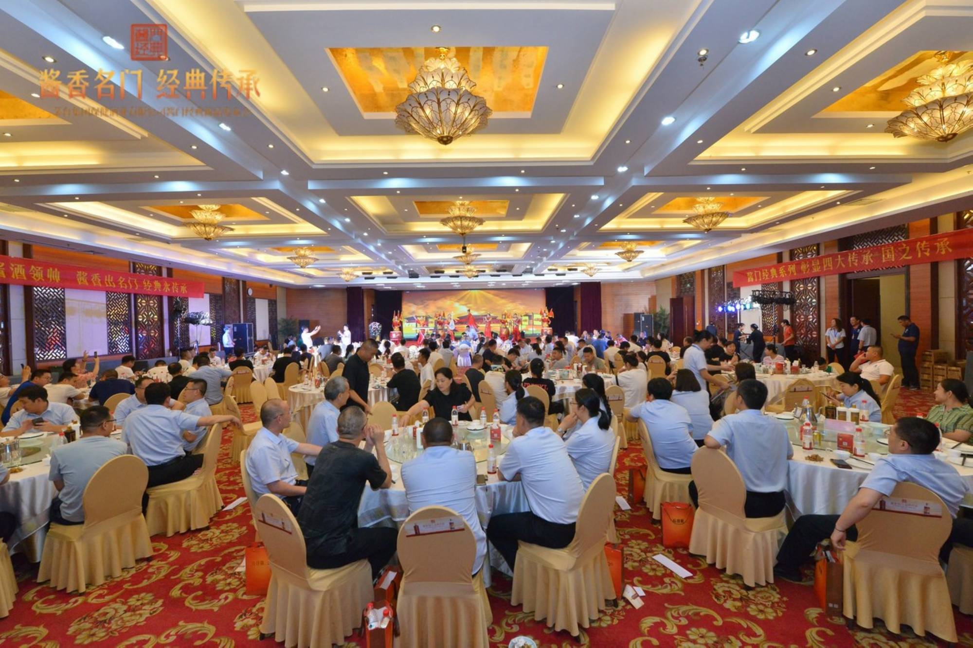 7月25日晚上,以“醬香名門,經(jīng)典傳承”為主題的醬門經(jīng)典新品發(fā)布會(huì)在臨沂賓館沂蒙路店舉行。本次發(fā)布會(huì)由貴州茅臺(tái)酒廠(集團(tuán))保健酒業(yè)有限公司主辦,超市公司承辦。貴州茅臺(tái)酒廠(集團(tuán))保健酒業(yè)有限公司負(fù)責(zé)人,超市公司領(lǐng)導(dǎo)班子、核心終端客戶及各門店店長(zhǎng)近200人參加發(fā)布會(huì)。