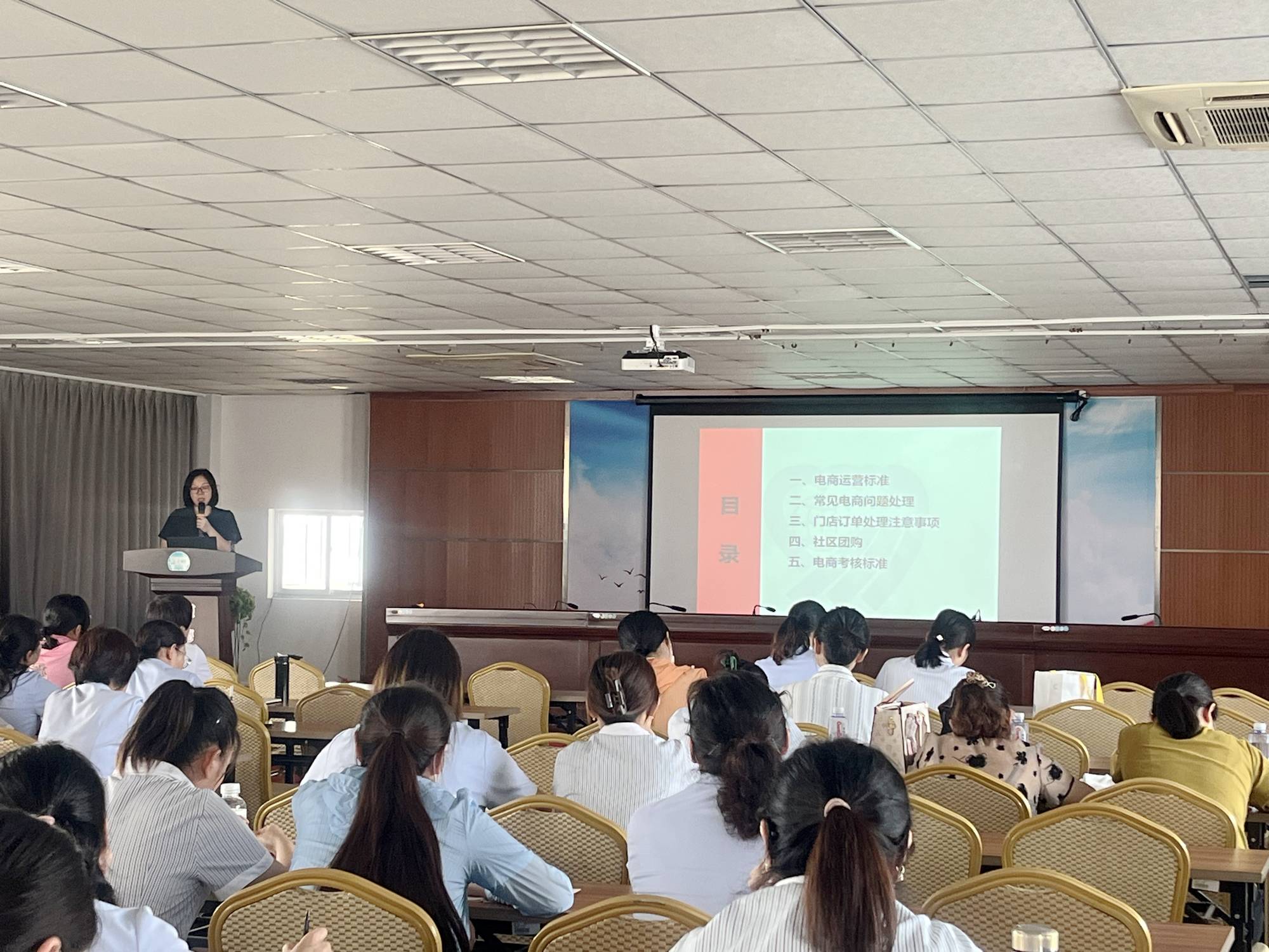 本次培訓(xùn)由集團(tuán)信息電商部經(jīng)理吳瑞偉、助理解自萍講授。吳瑞偉結(jié)合集團(tuán)上半年電商銷售情況分析了電商經(jīng)營管理過程中存在的問題及需要注意的事項(xiàng),并提出相應(yīng)的解決辦法。解自萍詳細(xì)講解了各部位在電商平臺實(shí)際運(yùn)營過程中遇到的問題及解決辦法,主要包括電商運(yùn)營流程、電商考核標(biāo)準(zhǔn)、常見電商問題處理、門店訂單處理注意事項(xiàng)及社區(qū)團(tuán)購使用注意事項(xiàng)等內(nèi)容,具有較強(qiáng)的針對性和指導(dǎo)性。