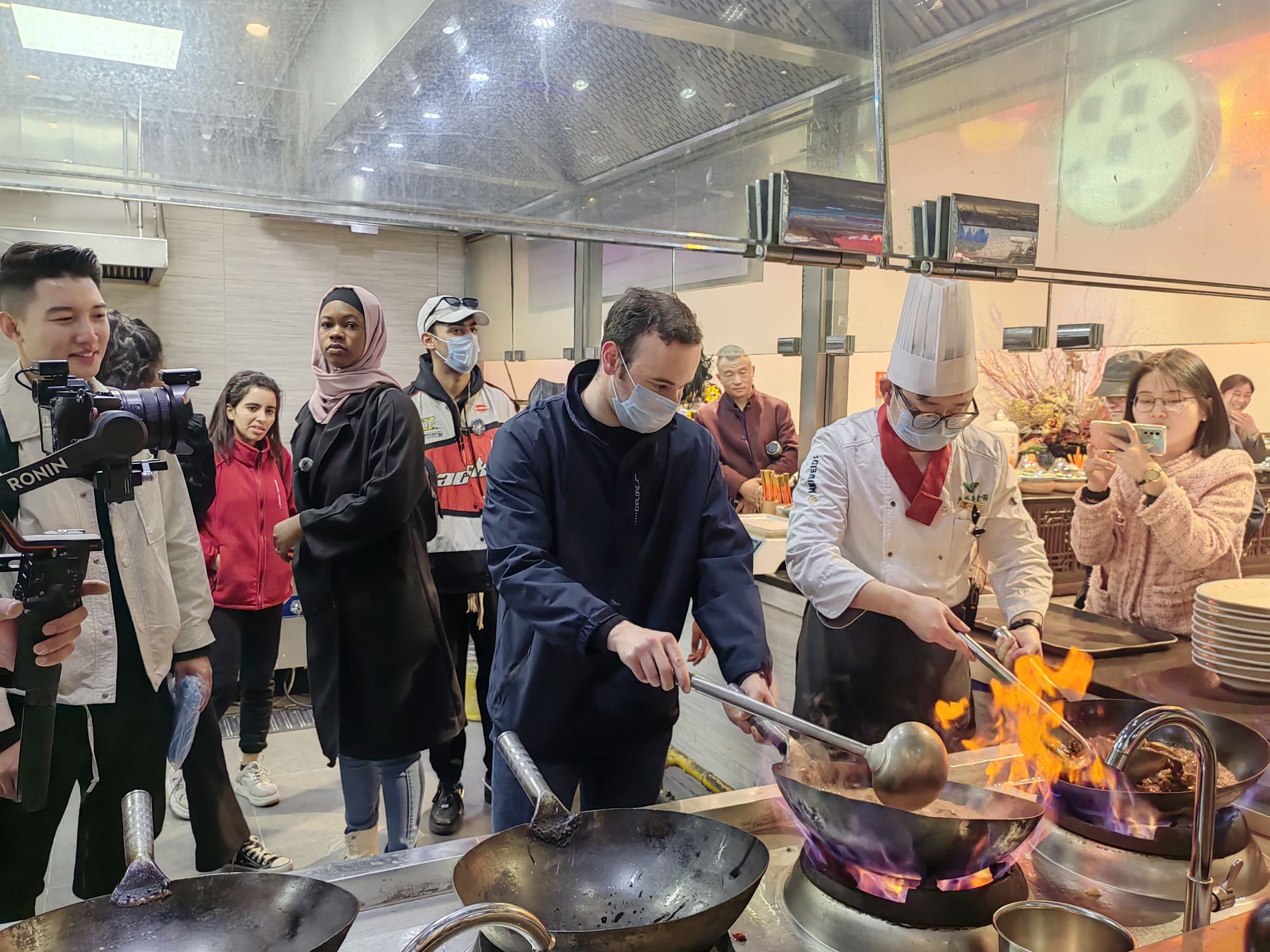 3月23日上午,由臨沂市委宣傳部、市外事辦主辦,蘭山區(qū)委宣傳部和金雀山街道協(xié)辦的在臨國際友人“感知新臨沂”活動走進臨沂賓館沂蒙路店九州美食園,了解和品嘗臨沂特色美食——臨沂炒雞。