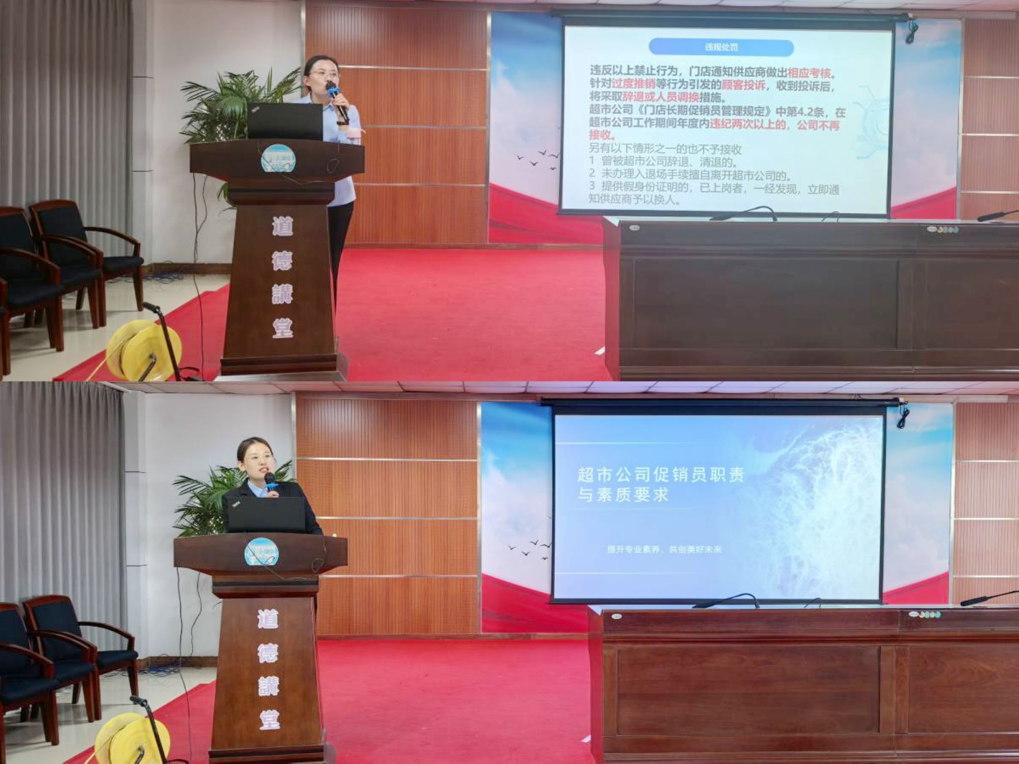 為全面提升超市公司各門店促銷員服務(wù)水平和銷售技能,4月7日-11日,超市公司在總部組織開展了促銷員業(yè)務(wù)專項(xiàng)培訓(xùn),各門店共1400余名促銷員參加。