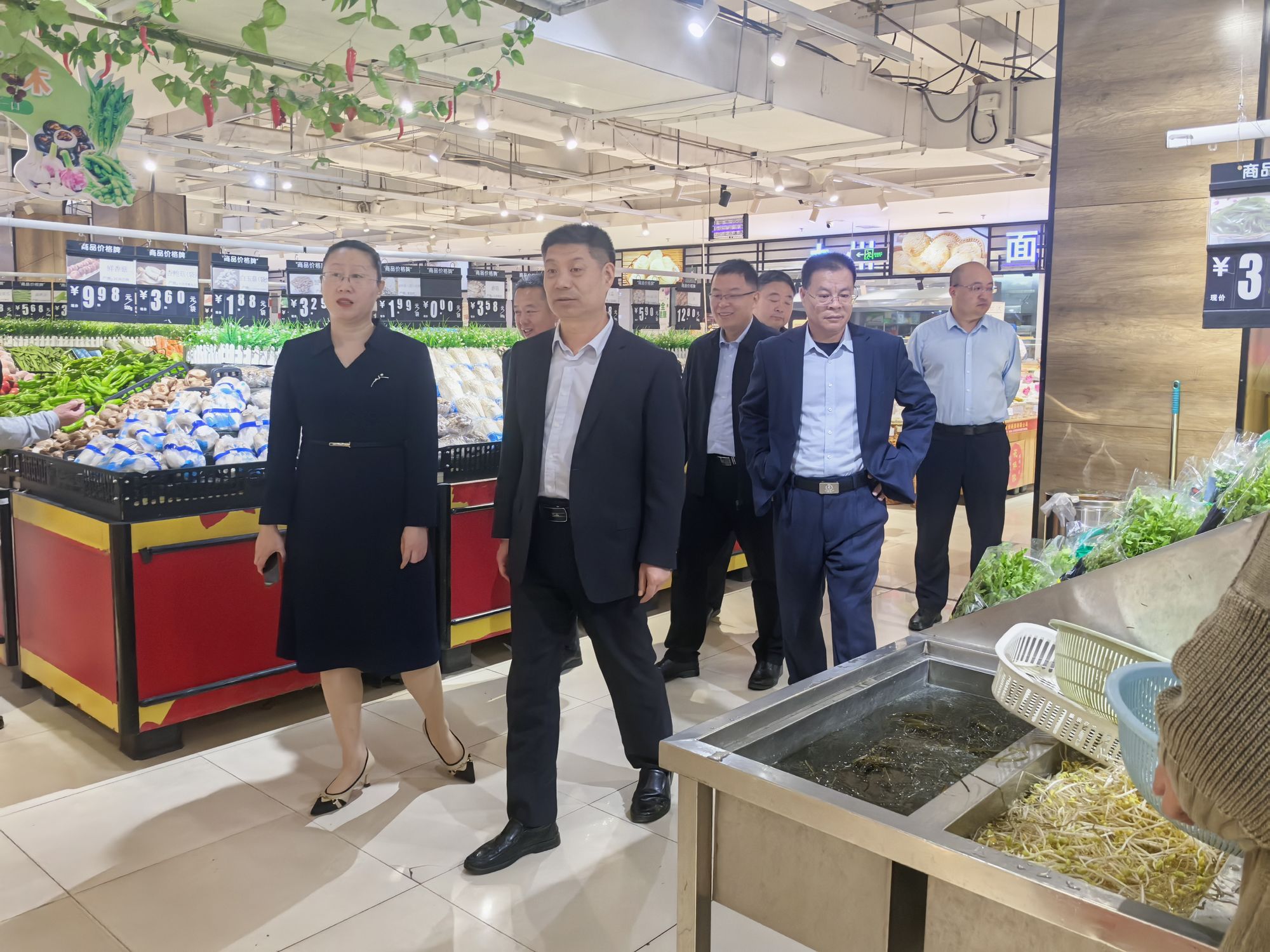 4月28日上午,臨沭縣人大常委會主任王京凱一行到九州大廈臨沭店超市調研食品安全工作。臨沭店店長張傳華、超市經理宋鵬飛陪同調研。