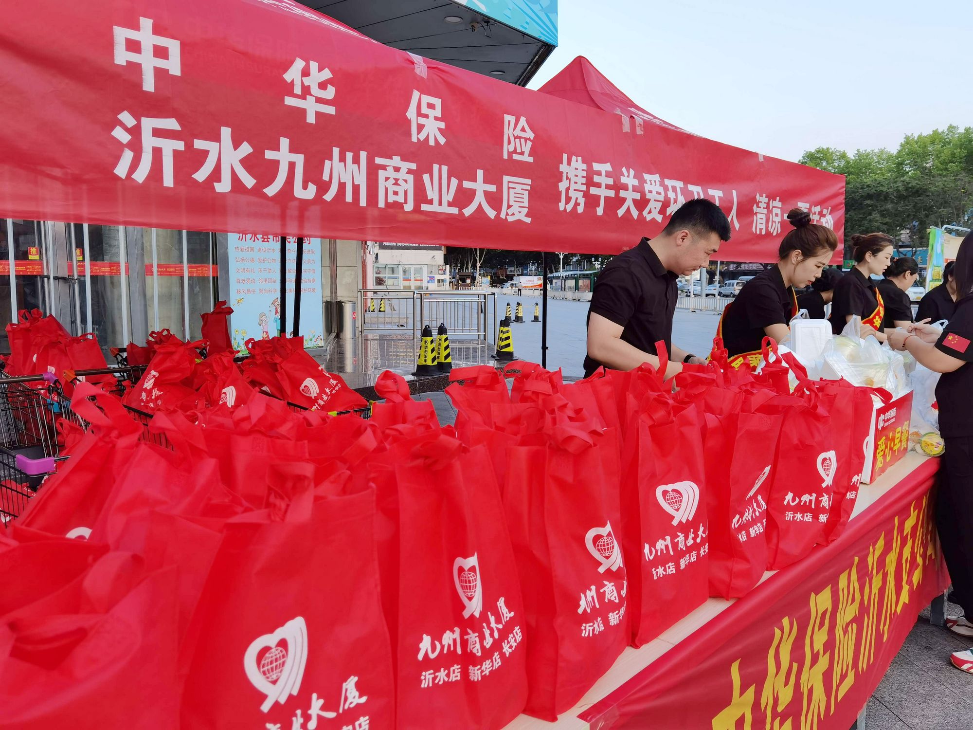 7月15日早上,九州商業(yè)大廈沂水門店攜手中華保險公司,在長安店門前廣場聯(lián)合開展了“攜手關愛環(huán)衛(wèi)工人 清涼一夏”公益活動,為150余名一線環(huán)衛(wèi)工人發(fā)放早餐與清涼禮包,在炎炎夏日為城市的“美容師”送去清涼與關懷。