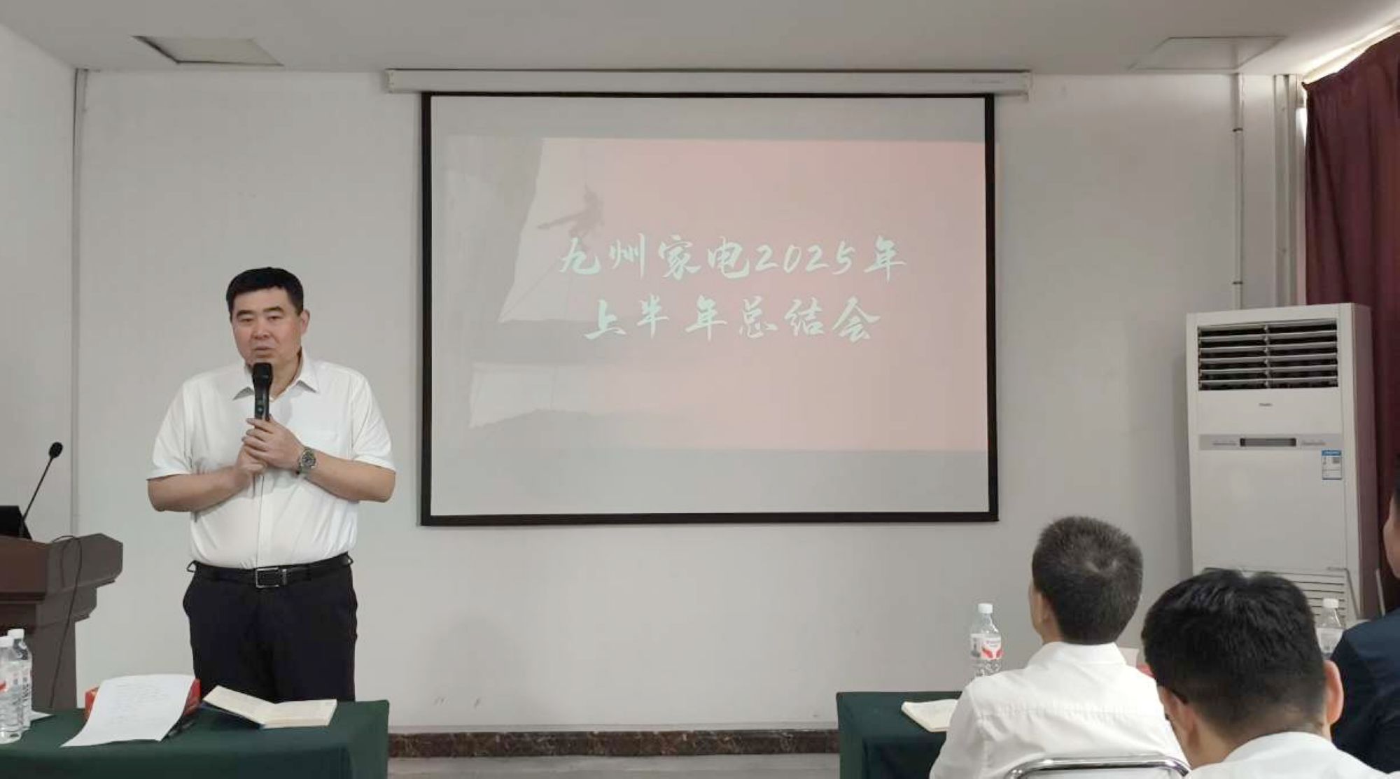 7月29日上午,九州家電2025年上半年工作總結(jié)會(huì)議在九州家電解放路店二樓會(huì)議室舉行,主管及以上管理人員共60余人參加。