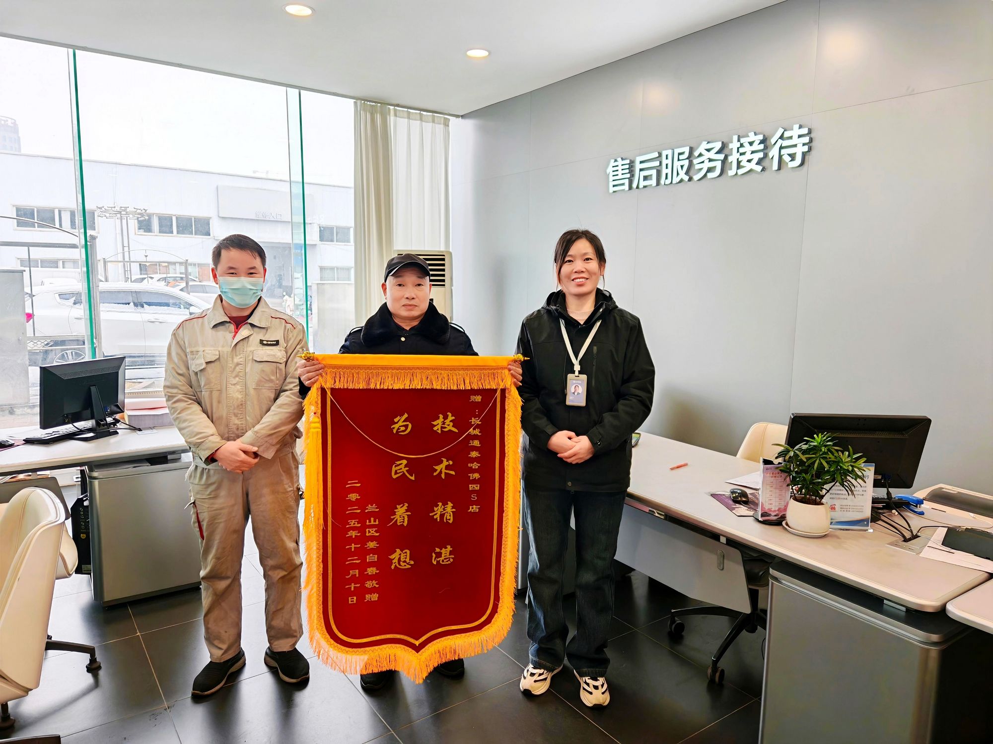 12月13日上午,九州汽貿(mào)通泰服務(wù)站收到一面來自哈弗車主姜先生的錦旗!凹夹g(shù)精湛 為民服務(wù)”,話語(yǔ)雖然簡(jiǎn)短,卻字字真情。