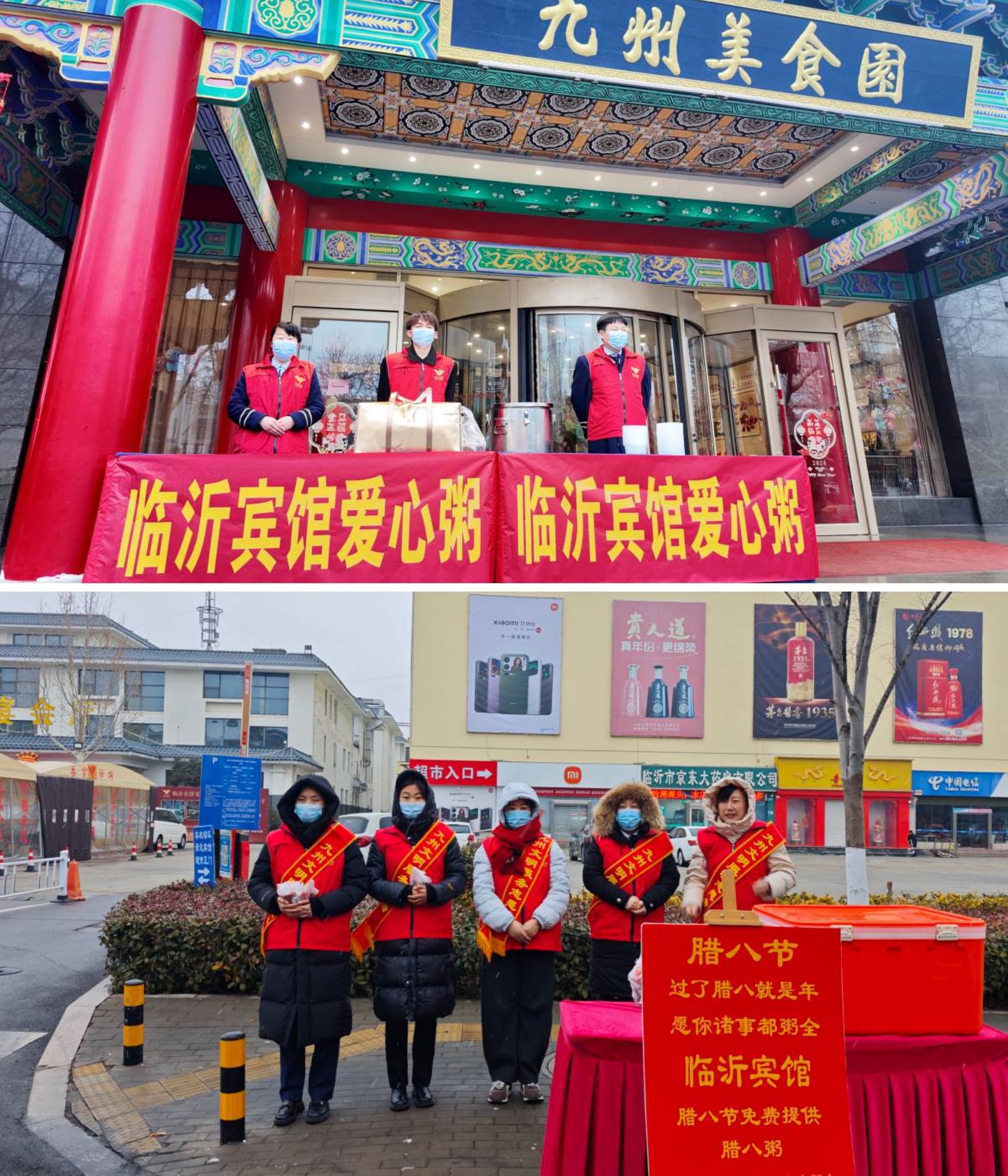 臨沂賓館組織開展“一碗熱粥暖寒冬,臨沂賓館送溫暖”贈送臘八粥公益活動。工作人員早早備料熬煮,將滿滿的心意融入每一碗臘八粥中。