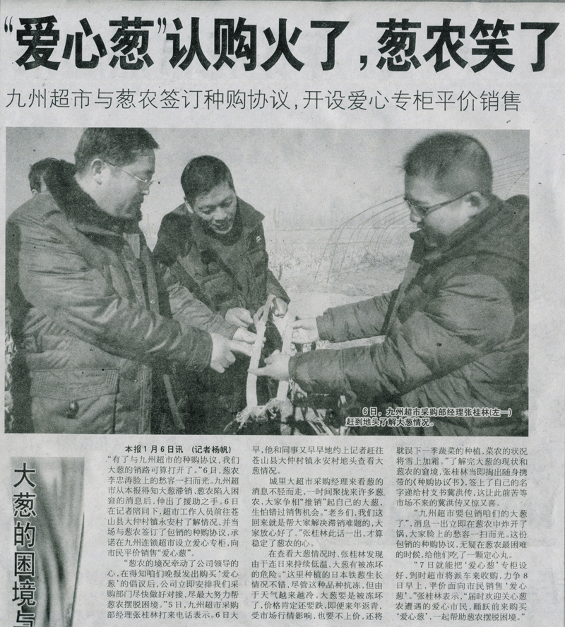購(gòu)協(xié)議》,并在所屬超市門店設(shè)立“愛(ài)心蔥”專柜。2011年1月7日的《沂蒙晚報(bào)》刊發(fā)了專稿予以報(bào)道。以