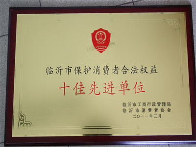 2011年臨沂市“3 .15”電視晚會于3月12日舉行,當晚揭曉了全市保護消費者合法權(quán)益十佳先進單位,集團公司榜上有名。 榮譽的獲得是對集團長期以來誠信經(jīng)營,優(yōu)質(zhì)服務(wù)的充分肯定。 集團在經(jīng)營中視商品質(zhì)量為生命,把顧客當親人,力求把最優(yōu)質(zhì)的服務(wù)、最優(yōu)良的商品奉獻給廣大消費者,打造了顧客滿意的誠信九州,受到社會各界的一種好評。去年五大單位全部被授予“山東省第八屆消費者滿意單位”榮譽稱號。
