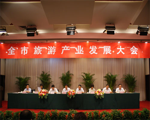2011年6月27日,全市旅游產(chǎn)業(yè)發(fā)展大會(huì)在臨沂賓館隆重召開(kāi)。省旅游局局長(zhǎng)于沖、臨沂市委副書(shū)記、市長(zhǎng)張務(wù)鋒、副市長(zhǎng)劉曉、人大副主任馮安、政協(xié)副主席楊?lèi)?ài)華等領(lǐng)導(dǎo)出席大會(huì)。