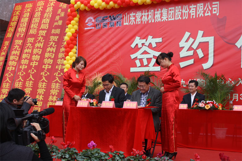 11月3日,臨沭九州購物中心在臨沭縣舉行簽約儀式。臨沭縣副縣長王新端及縣直有關(guān)部門負責(zé)人出席簽約儀式,山東常林機械集團股份有限公司董事長張義華、總裁鐘默等與集團領(lǐng)導(dǎo)楊沂城、王佐文、楊永東共同參加簽約儀式。 臨沭九州購物中心位于常林集團常林御園,是集精品百貨、生活超市、國際餐飲、休閑娛樂等為一體的綜合性購物中心,建成后營業(yè)面積3萬余平方米,將成為臨沭縣規(guī)模最大、經(jīng)營品種最多、裝修檔次最高、服務(wù)最為完善的大型購物中心。該項目的簽約,標志著九州集團正式進駐臨沭,建成后對方便居民消費,進一步提升居民生活水平,促進臨沭商貿(mào)經(jīng)濟的發(fā)展將起到積極作用。