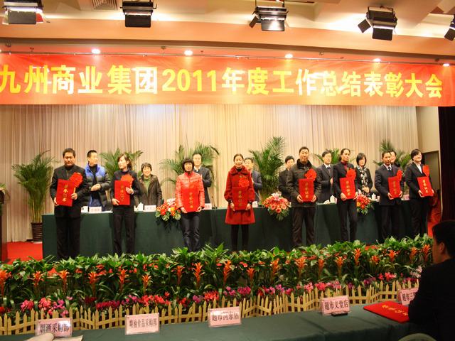 1月30日,集團(tuán)2011年度工作總結(jié)表彰大會在臨沂賓館舉行,會議總結(jié)了2011年度集團(tuán)各項工作,表彰了一年來涌現(xiàn)出來的先進(jìn)集體和個人,并對2012年工作計劃進(jìn)行了部署安排。董事長楊沂城主持會議并作重要講話,黨委書記王佐文宣讀表彰決定,楊永東作《山東九州商業(yè)集團(tuán)2011年度工作報告》。受到表彰的先進(jìn)集體和個人及干部職工代表400余人參加會議。 工作報告從經(jīng)營、管理、文明建設(shè)三個方面回顧了集團(tuán)過去一年取得的成績并給予肯定,并指出了經(jīng)營管理中存在的問題。會上還對集團(tuán)一年來涌現(xiàn)出的29個先進(jìn)集體,兩個突出貢獻(xiàn)部位,一名勞動模范,一名創(chuàng)新工作能手,27名崗位標(biāo)兵,52名優(yōu)秀管理人員和1085名先進(jìn)工作者進(jìn)行了表彰。汽貿(mào)公司副總經(jīng)理、順通長城4S店經(jīng)理曲邦恒,超市公司苗莊店生鮮主管張興峰分別代表先進(jìn)集體和先進(jìn)個人發(fā)言。 會議要求,集團(tuán)廣大干部職工要以先進(jìn)為榜樣,大力弘揚企業(yè)精神,團(tuán)結(jié)一心、拼搏奉獻(xiàn),努力完成2012年度各項經(jīng)營指標(biāo)。