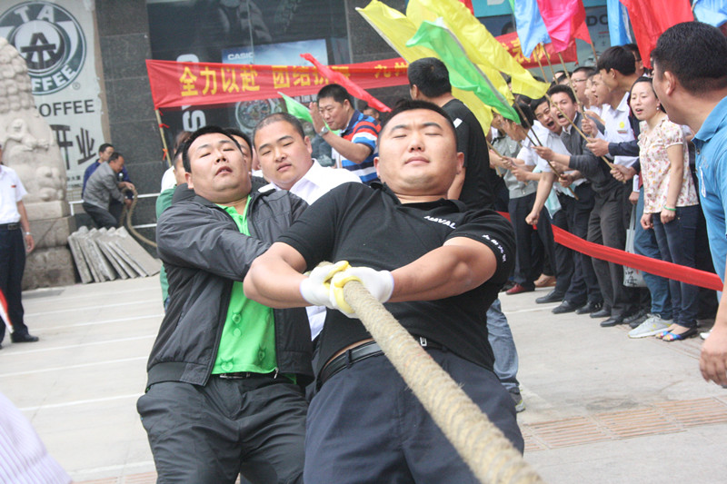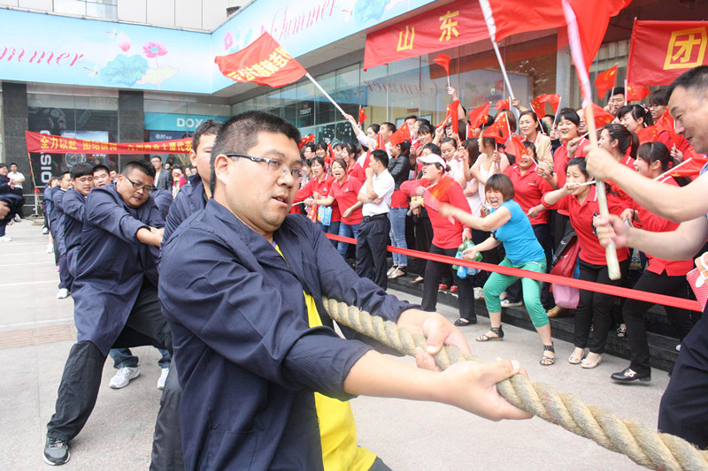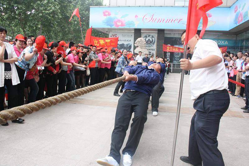 5月23日上午,集團(tuán)運動會拔河比賽項目在九州商業(yè)大廈門前廣場舉行,超市公司、九州大廈、臨沂賓館、九州宜家佳、九州汽貿(mào)等五支代表隊參加比賽。經(jīng)過激烈角逐,超市公司成功衛(wèi)冕,臨沂賓館、九州宜家佳分獲二、三名。比賽現(xiàn)場,廣大員工展現(xiàn)出了積極向上、團(tuán)結(jié)拼搏的良好精神風(fēng)貌。 拔河比賽項目的舉行,拉開了集團(tuán)運動會的序幕。運動會上各單位都精心準(zhǔn)備了豐富多彩的比賽項目,豐富員工生活,鍛煉員工體魄,促進(jìn)交流溝通。