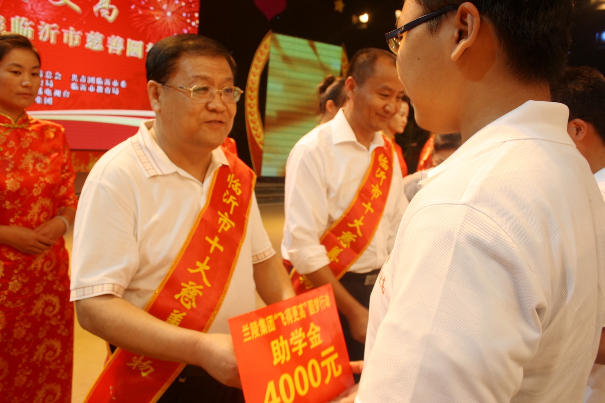 晚會(huì)結(jié)束后,省市領(lǐng)導(dǎo)與臨沂市十大慈善家合影留念 8月20日,臨沂市2013年慈善圓夢(mèng)晚會(huì)在市廣電大廈演播大廳舉行。原副省長、山東省慈善總會(huì)會(huì)長謝玉堂,市委書記、市人大常委會(huì)主任張少軍,市委副書記李峰等領(lǐng)導(dǎo)出席。晚會(huì)現(xiàn)場(chǎng)對(duì)2013年十大慈善單位,十大慈善個(gè)人進(jìn)行表彰。 會(huì)上,臨沂市慈善總會(huì)、臨沂市民政局授予集團(tuán)“臨沂慈善獎(jiǎng)”榮譽(yù)稱號(hào),授予集團(tuán)董事長楊沂城“臨沂市十大慈善家”榮譽(yù)稱號(hào),以表彰我集團(tuán)為我市慈善事業(yè)作出的突出貢獻(xiàn)。 九州慈善基金自2008年8月設(shè)立以來,累計(jì)發(fā)放助學(xué)金200余萬元,先后對(duì)來自全市各地的600余名寒門學(xué)子進(jìn)行救助。目前,該項(xiàng)目已成為我市知名的慈善助學(xué)品牌,并先后榮獲“臨沂慈善獎(jiǎng)”,“山東慈善獎(jiǎng)”等獎(jiǎng)項(xiàng)。